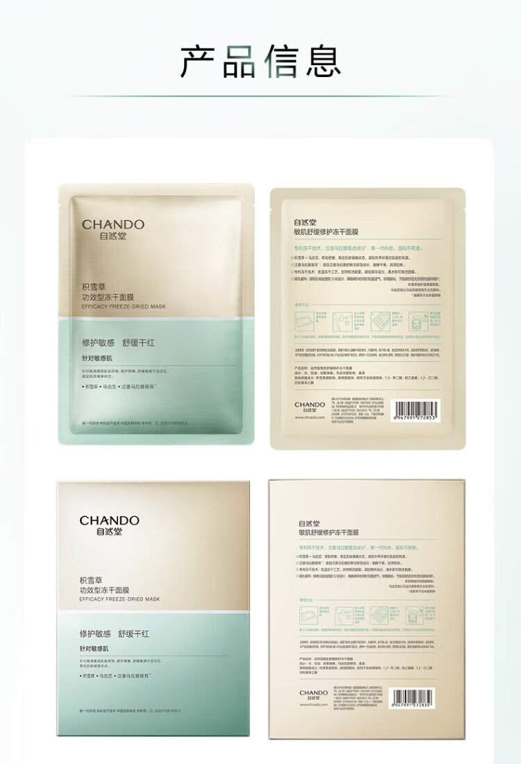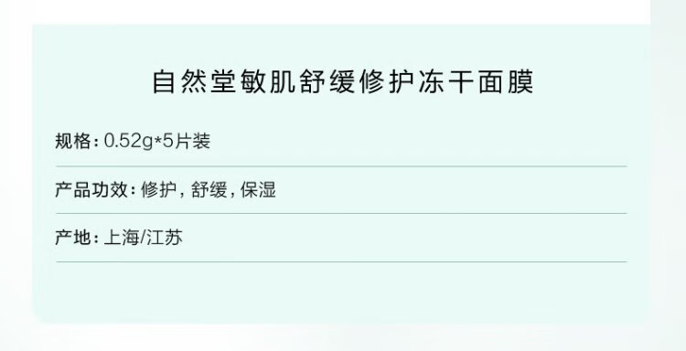 Zendo Centella Asiatica freeze-dried facial mask 0.52g 5 pieces, suitable for sensitive skin, maintaining stability, repairing, soothing, dry red, hydrating and moisturizing