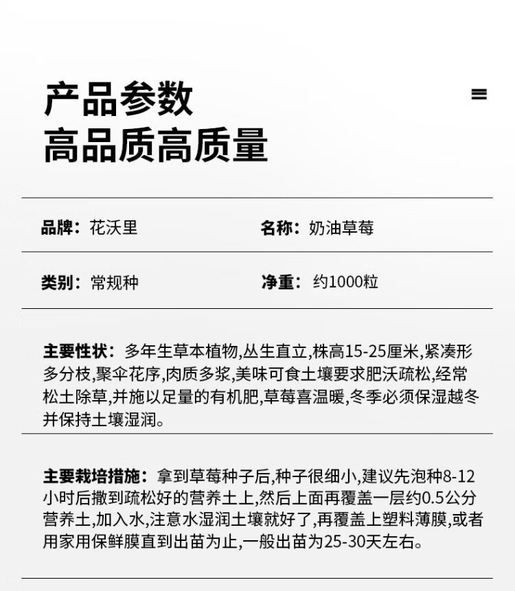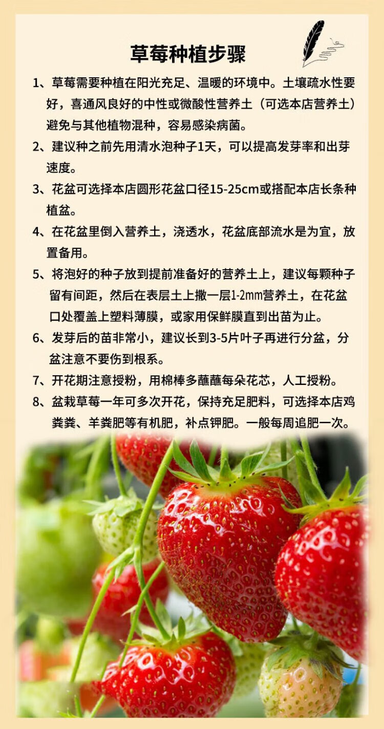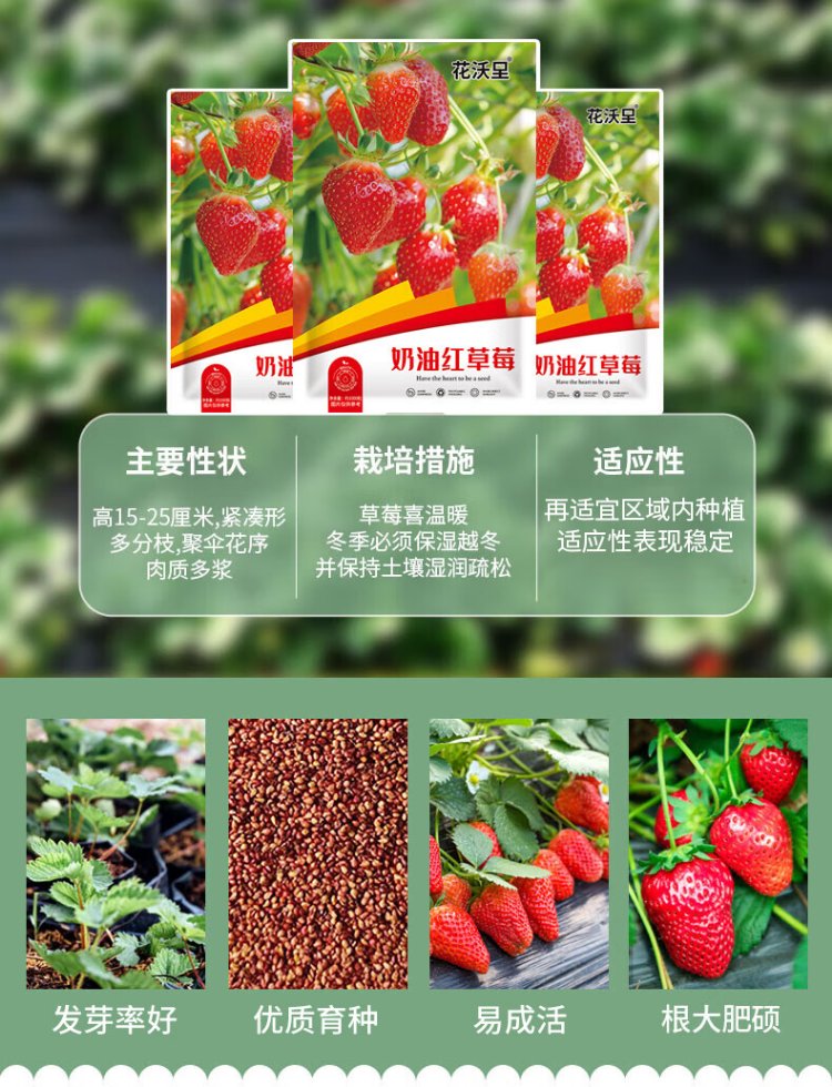 Huawoli Cream Strawberry Seeds 1000 Red Strawberry Vegetable Seeds Four Seasons Strawberry Seedlings Indoor and Outdoor Balcony Potted Plants