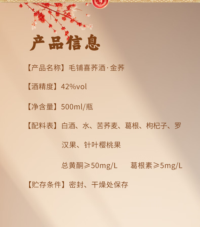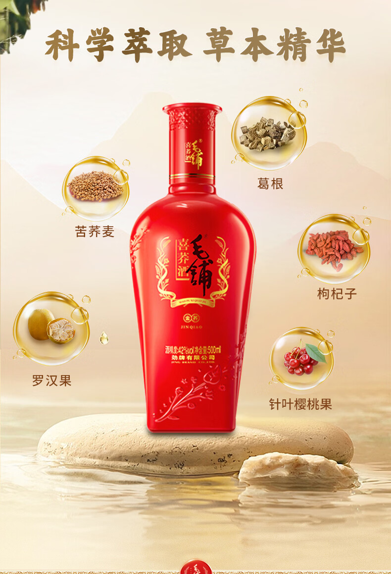 Jin brand Maopu tartary buckwheat wine herbal wine Xi buckwheat wine golden buckwheat 42 degrees 500ml single bottle New Year's gift