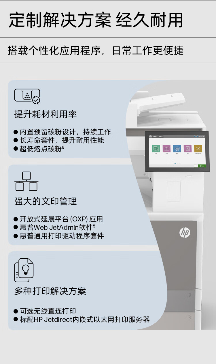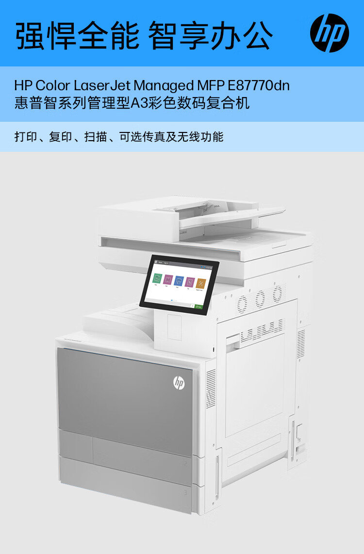 惠普(HP)E87770dn A3彩色激光管理型高速数码复合机 打印 复印 扫描 企业级 70页/分钟(原厂1年上门)