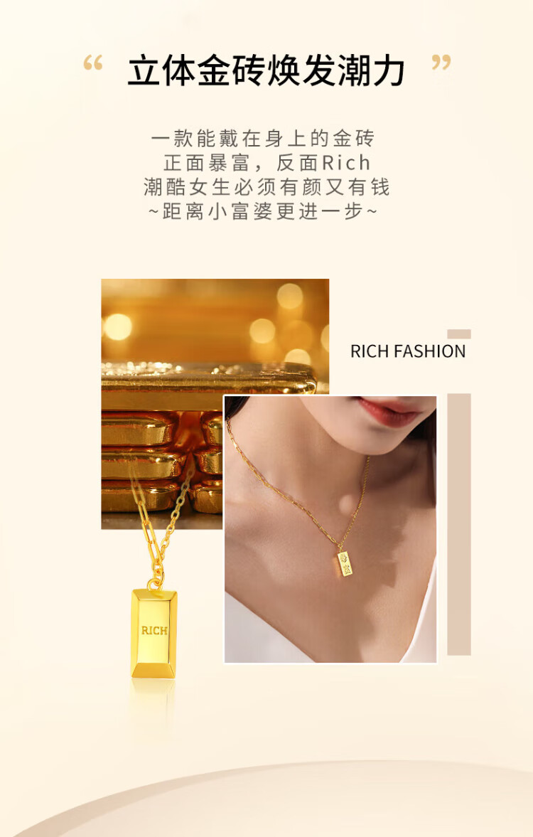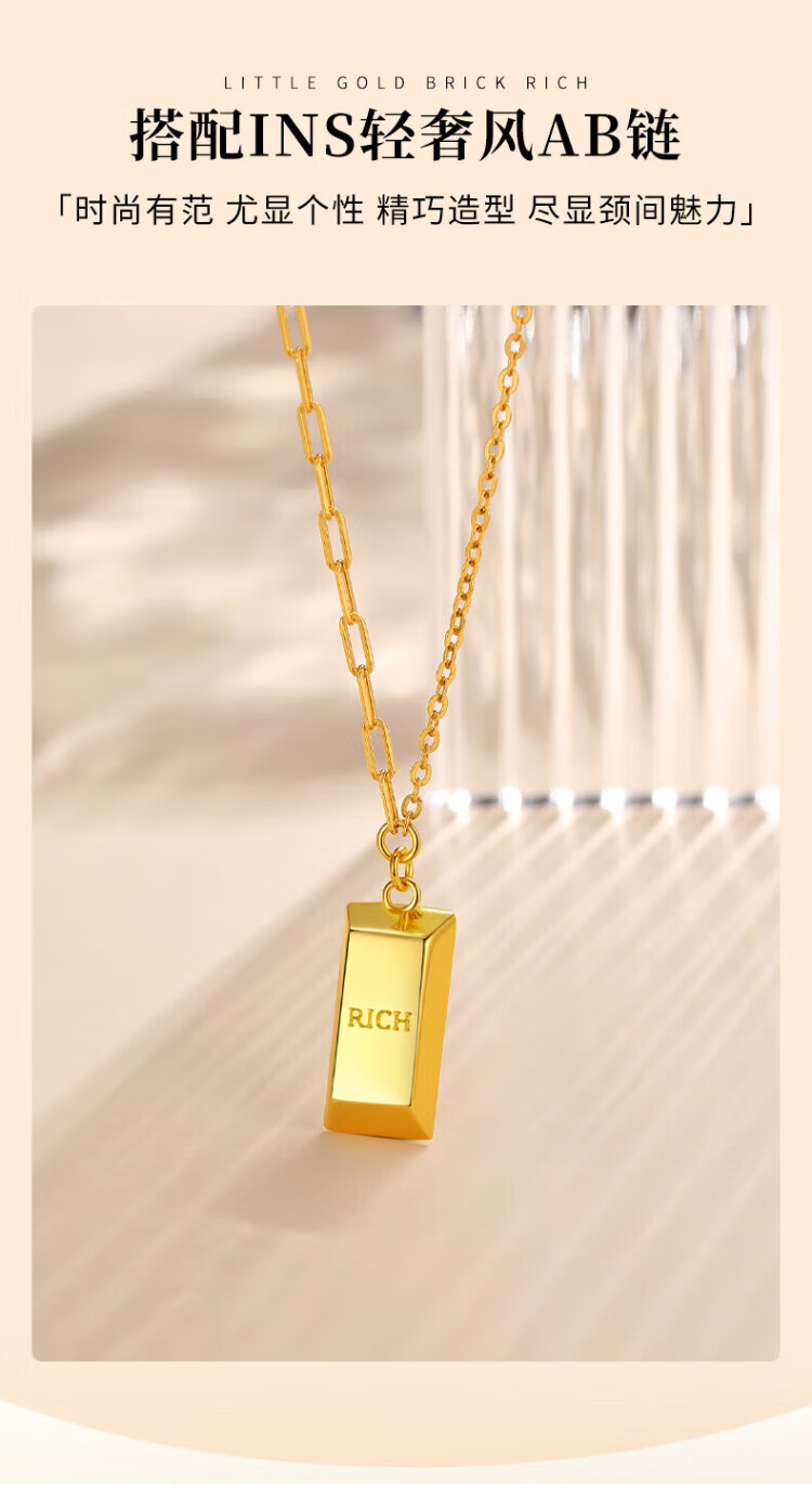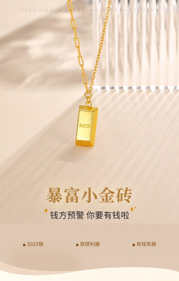 Central Chuang Fashion Chinese Gold Necklace Women's Silver Small Gold Nugget Rich Pendant Birthday Gift for Girlfriend and Best Friend S925