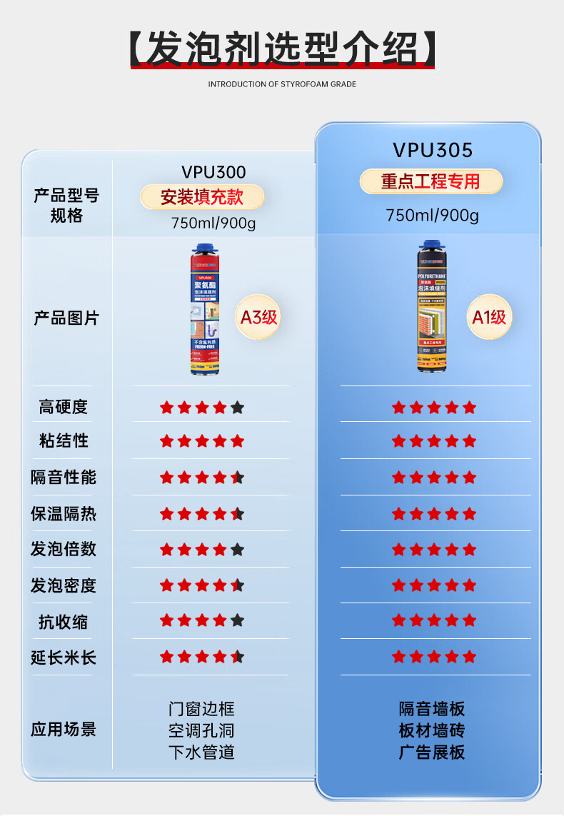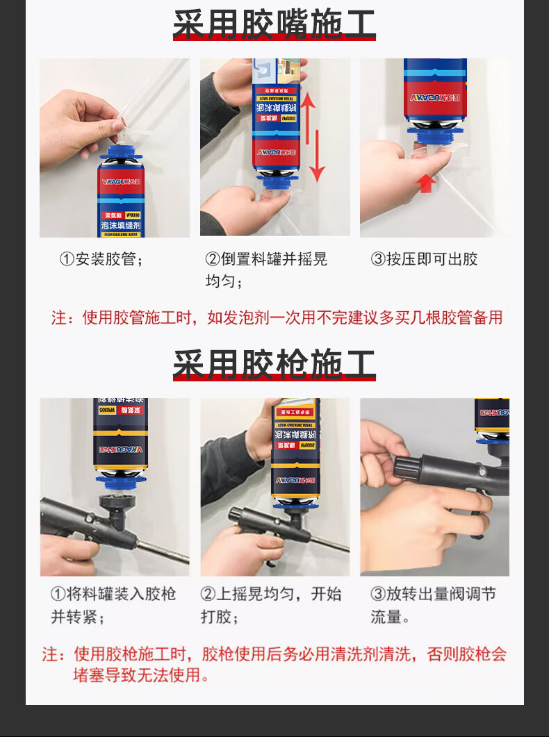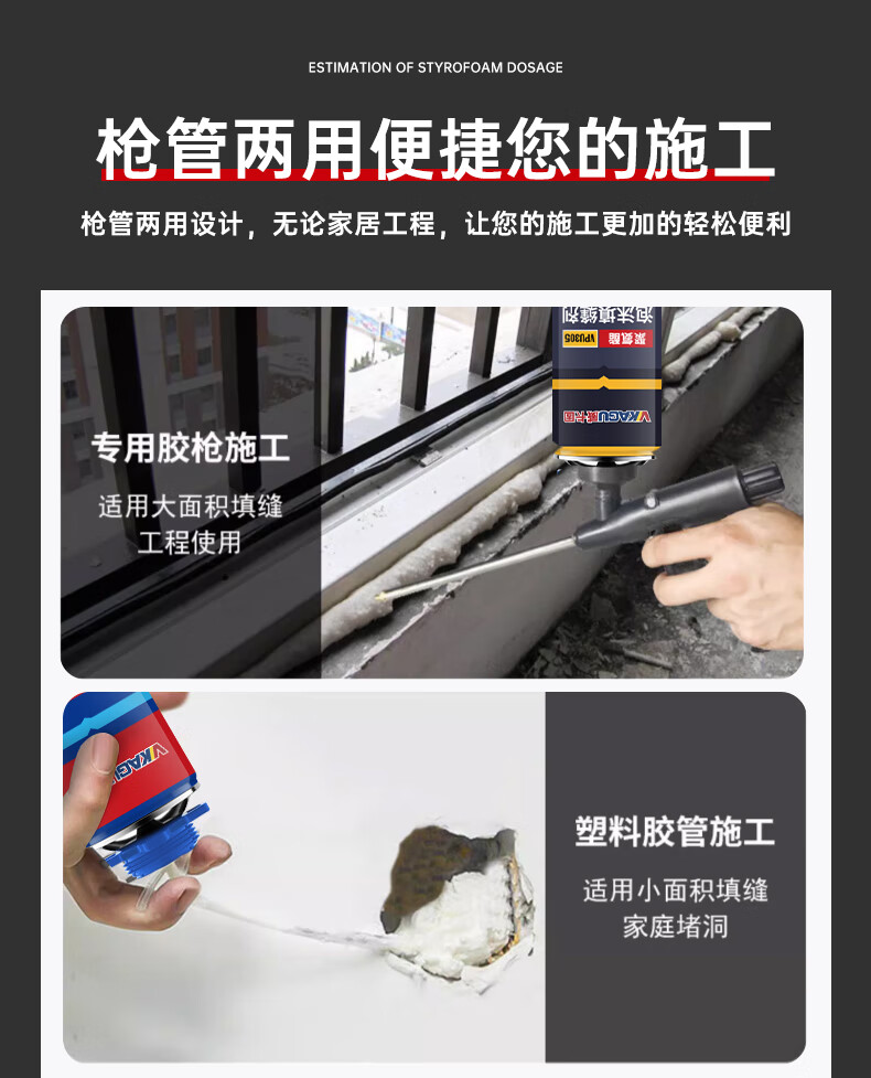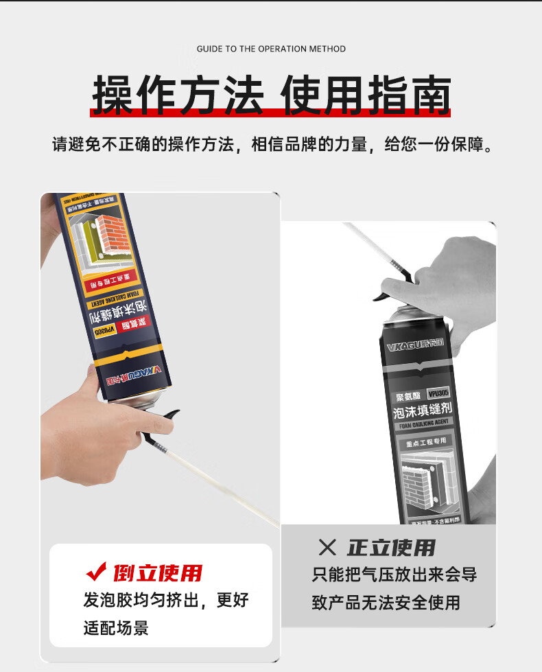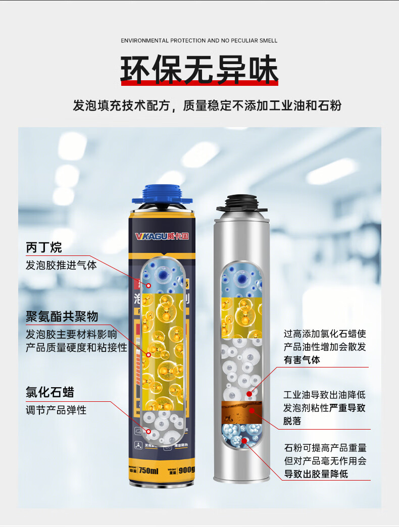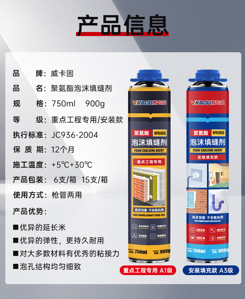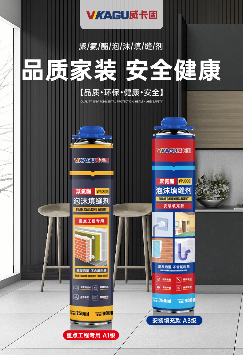 VIKAGU foam adhesive A2 grade hardness polyurethane foam caulking agent foam adhesive door and window filling barrel integrated VPU300 900g