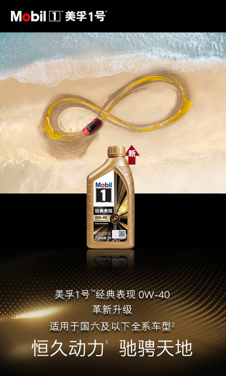 Mobil Advanced Fully Synthetic Xiaojinmei Gasoline Oil Classic Performance 0W-40 SP 1L*6 Car Maintenance