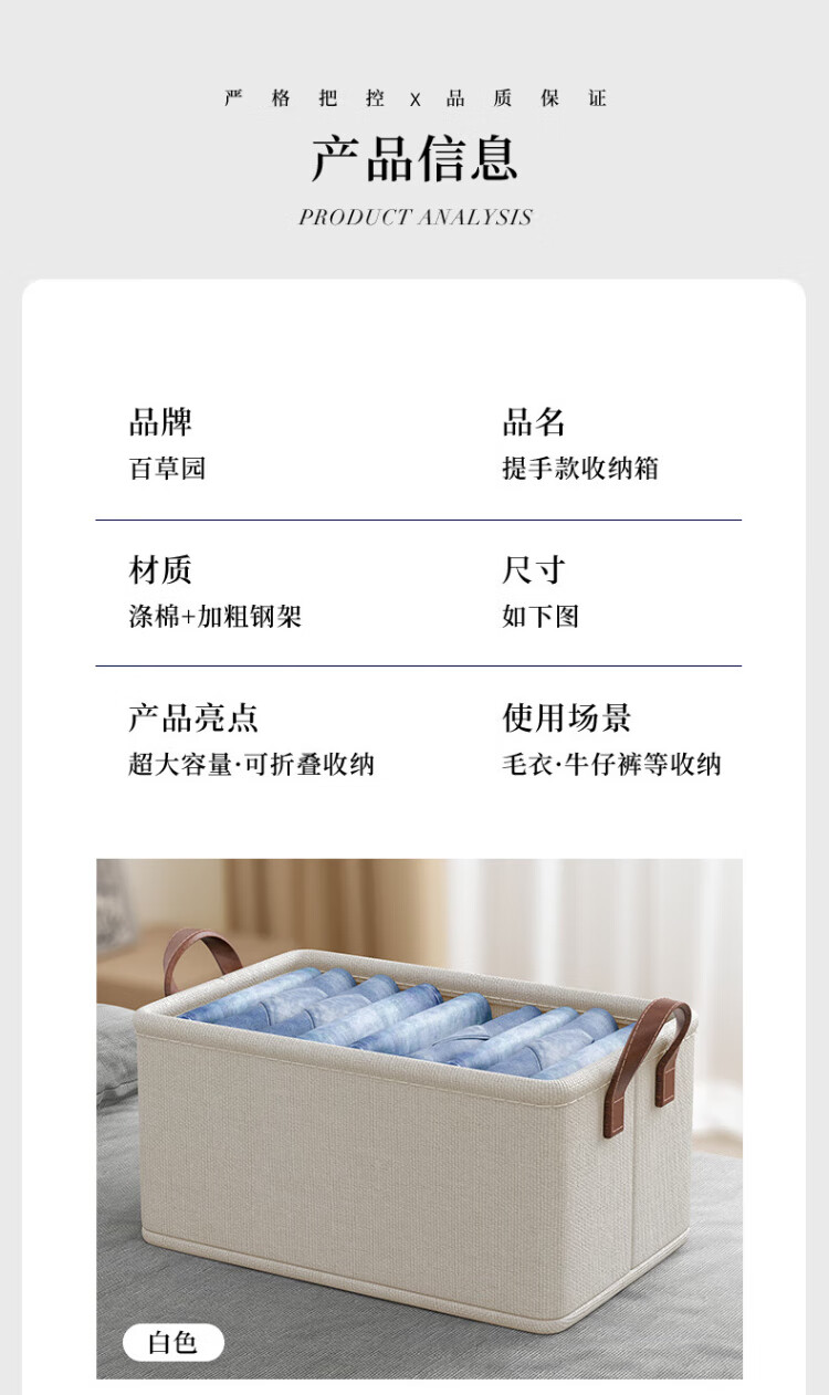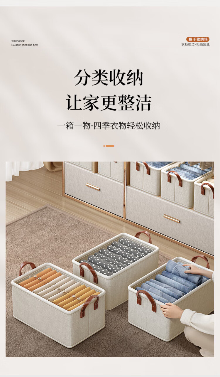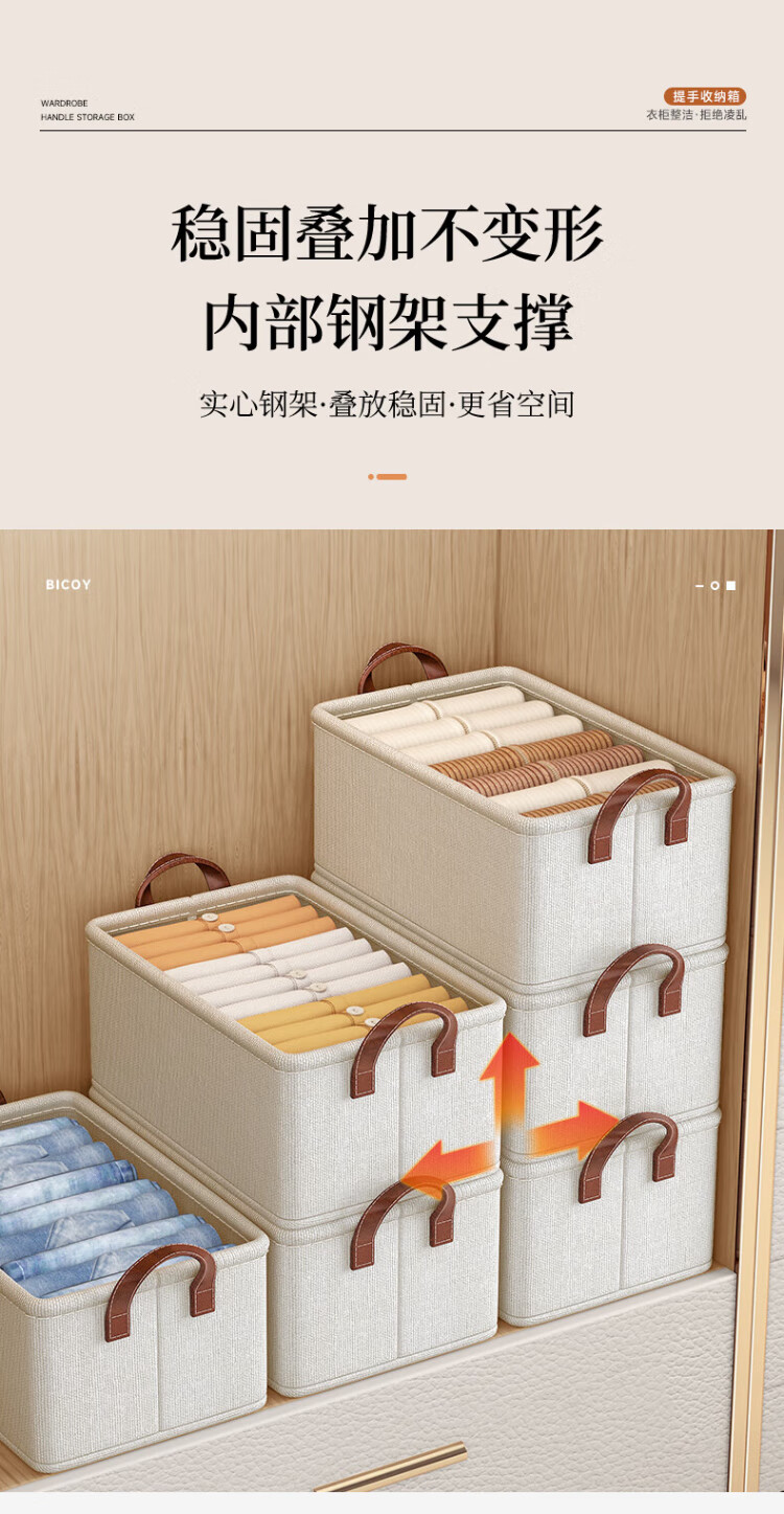 Baicaoyuan storage box clothes and pants storage box basket fabric underwear wardrobe storage folding layered finishing partition artifact large size