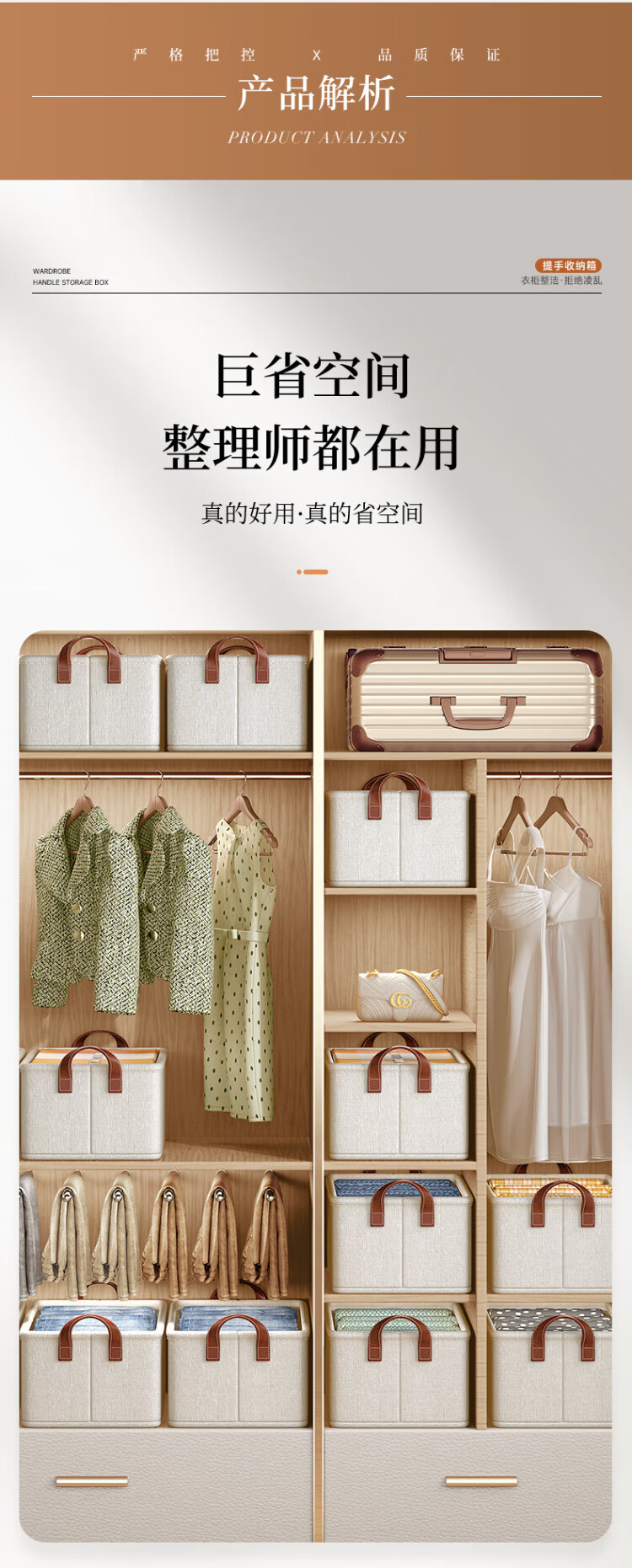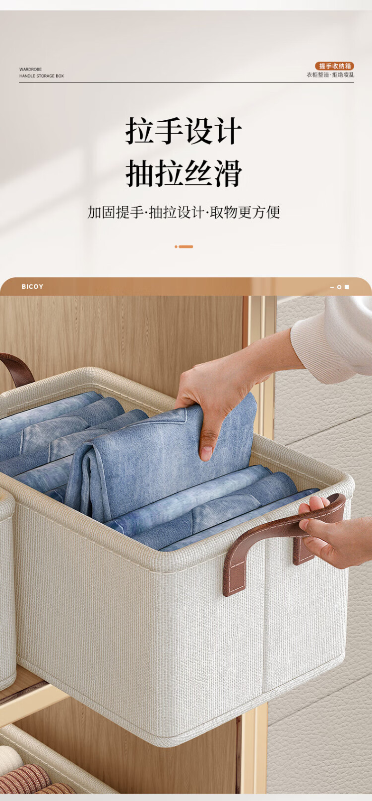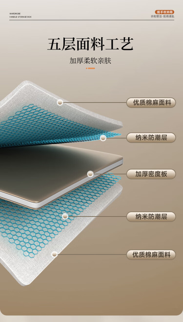 Baicaoyuan storage box clothes and pants storage box basket fabric underwear wardrobe storage folding layered finishing partition artifact large size