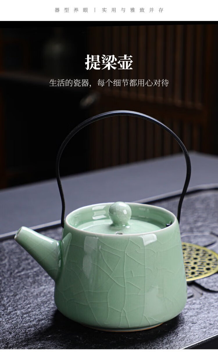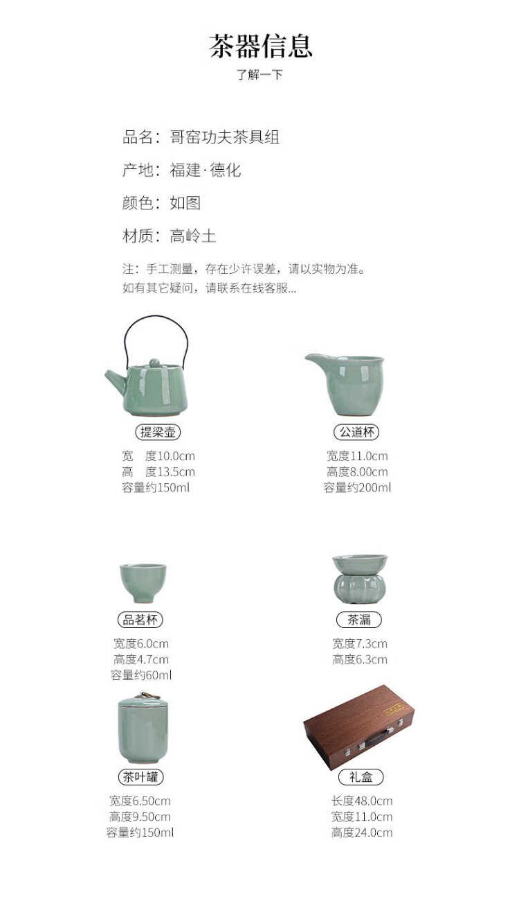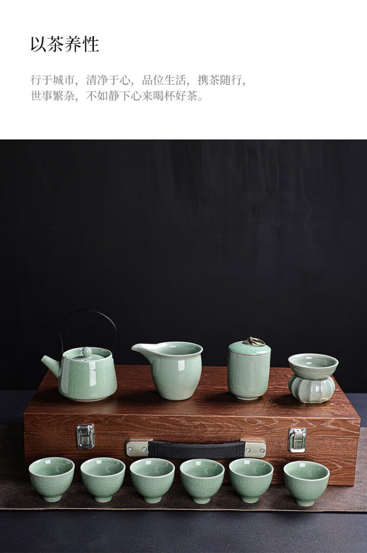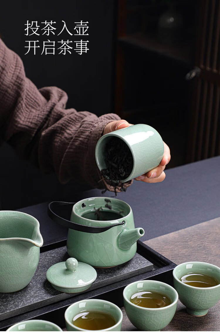 Zhai Leisure Ge Kiln Celadon Kung Fu Tea Set Home Office Teapot Complete Set Tea Set Gift Box Set 11 Pieces