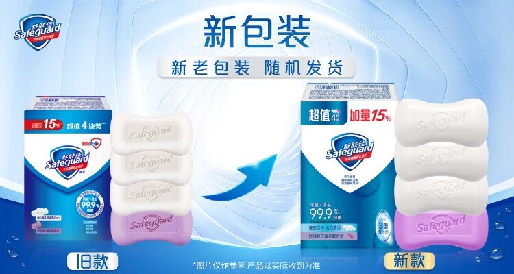 Safeguard soap 4 soaps (3 pure white + 1 lavender) 99.9% sterilization bath soap soap new and old packaging random