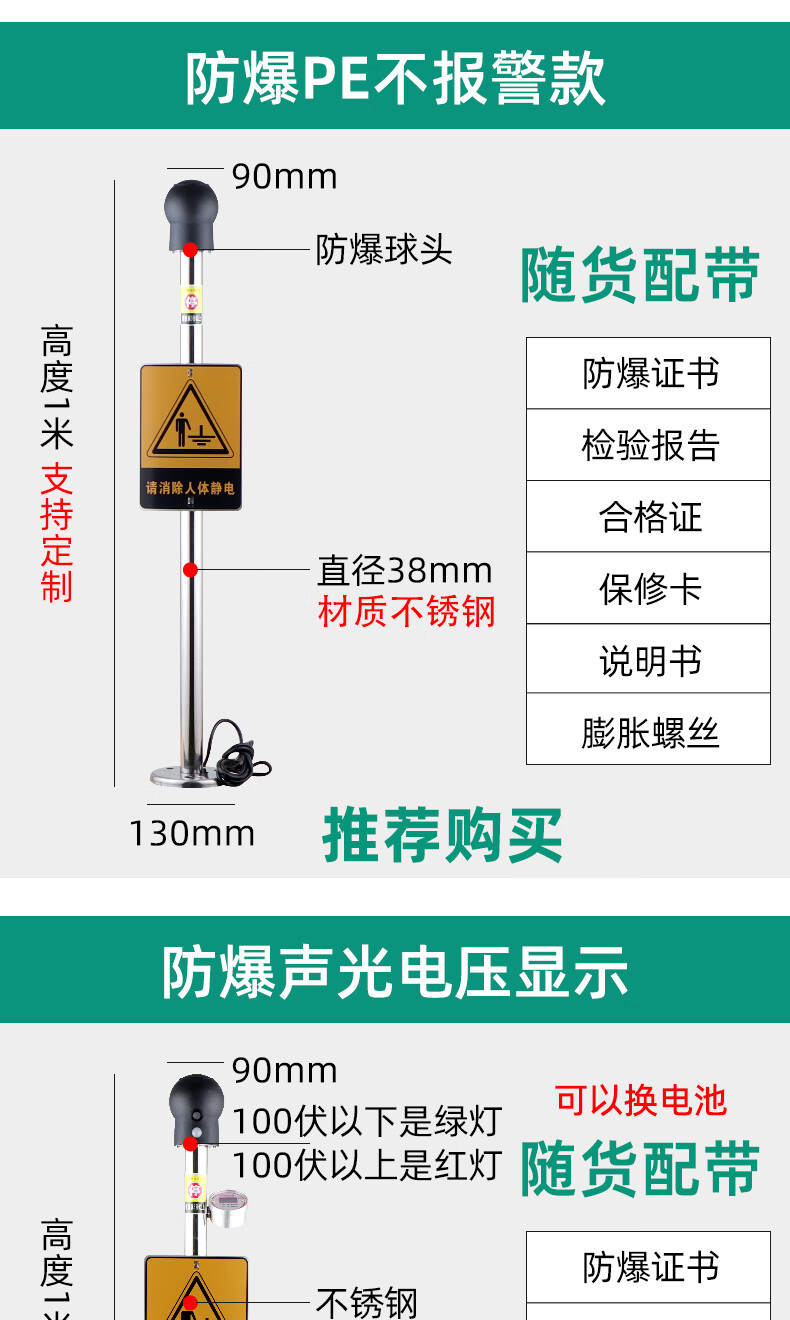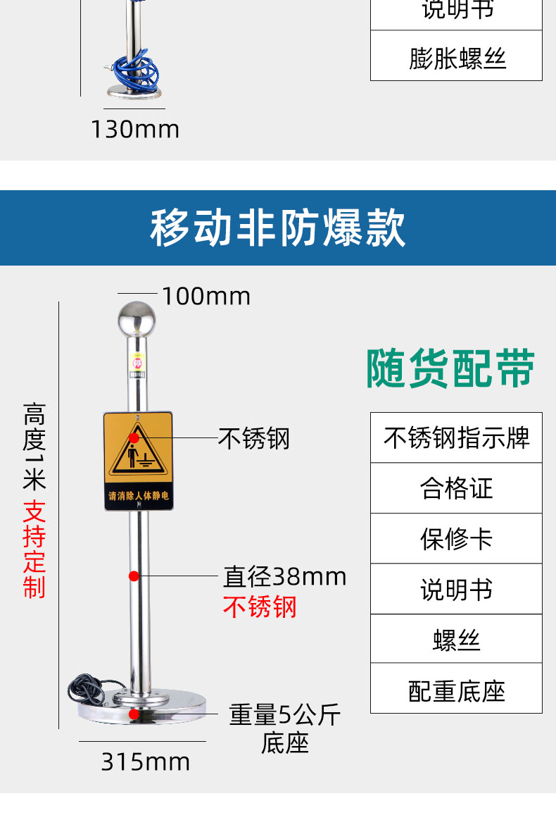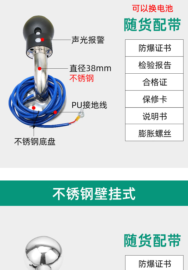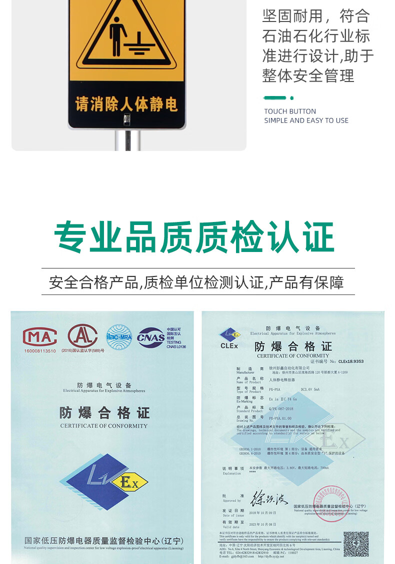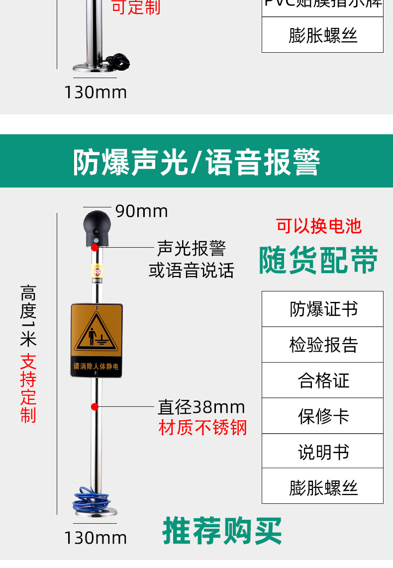 Chuanglai intrinsically safe human body electrostatic discharger elimination ball sound and light ball head industrial electrostatic discharge column pile instrument touch guide removal device