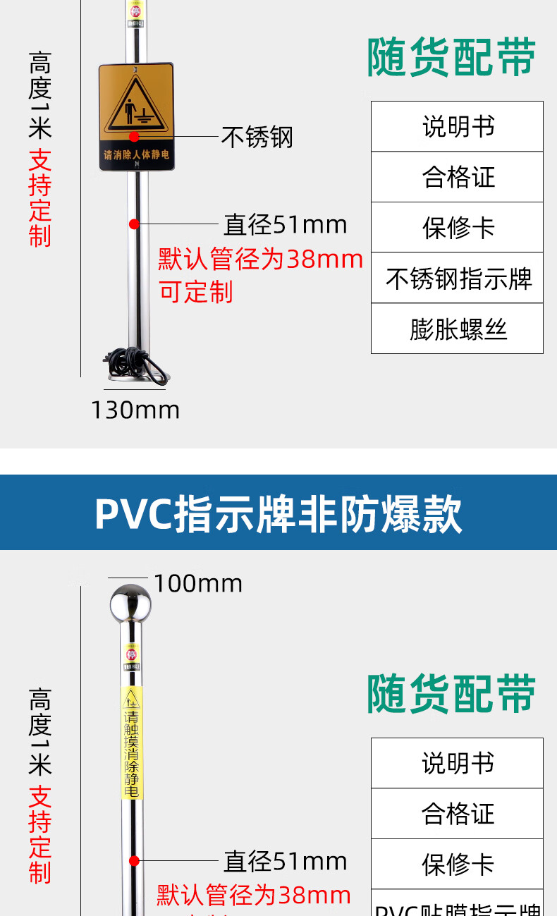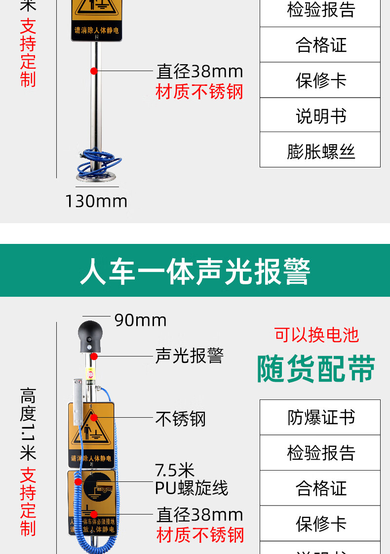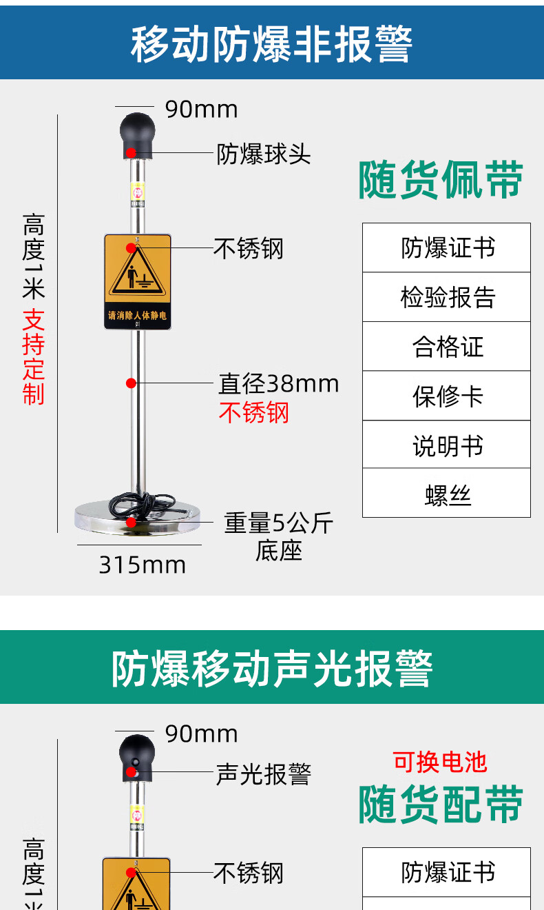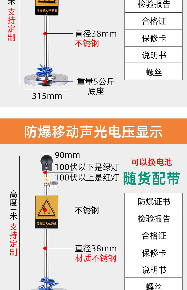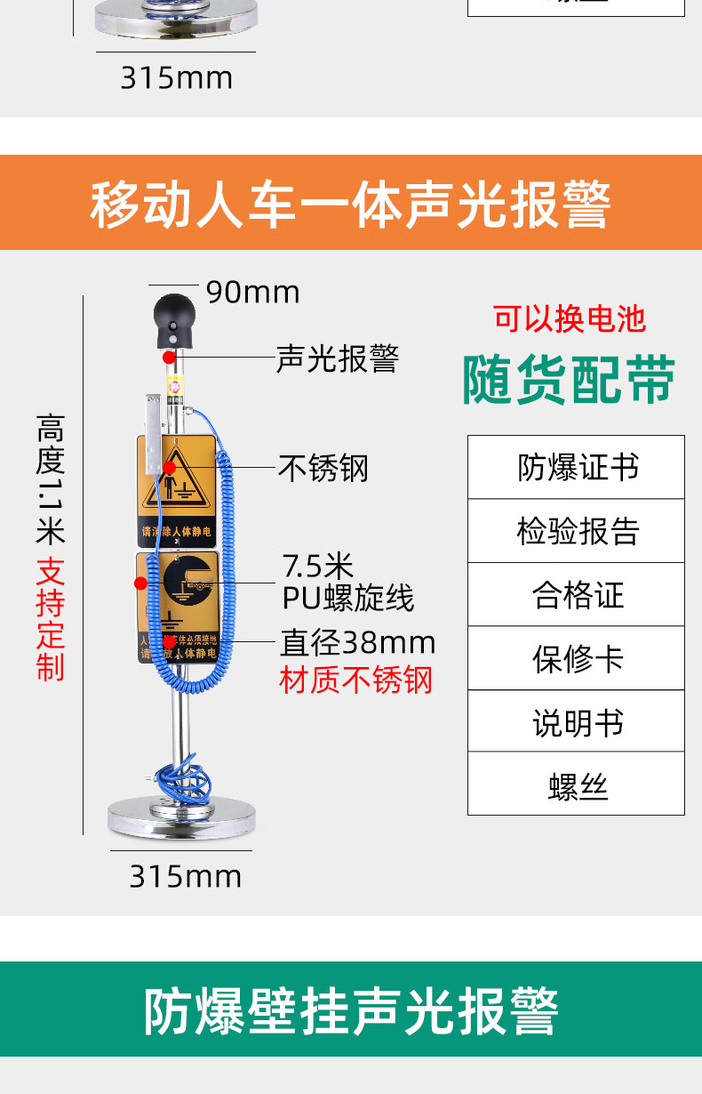 Chuanglai intrinsically safe human body electrostatic discharger elimination ball sound and light ball head industrial electrostatic discharge column pile instrument touch guide removal device
