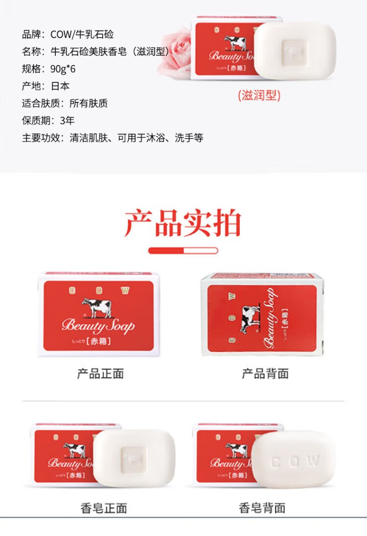 Cow's milk alkaline cow's milk alkaline (COW) Japanese imported handmade cleansing and bathing soap moisturizing 6 pieces