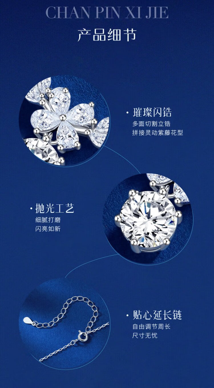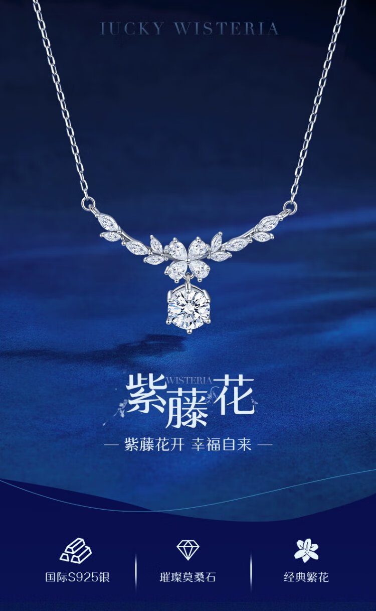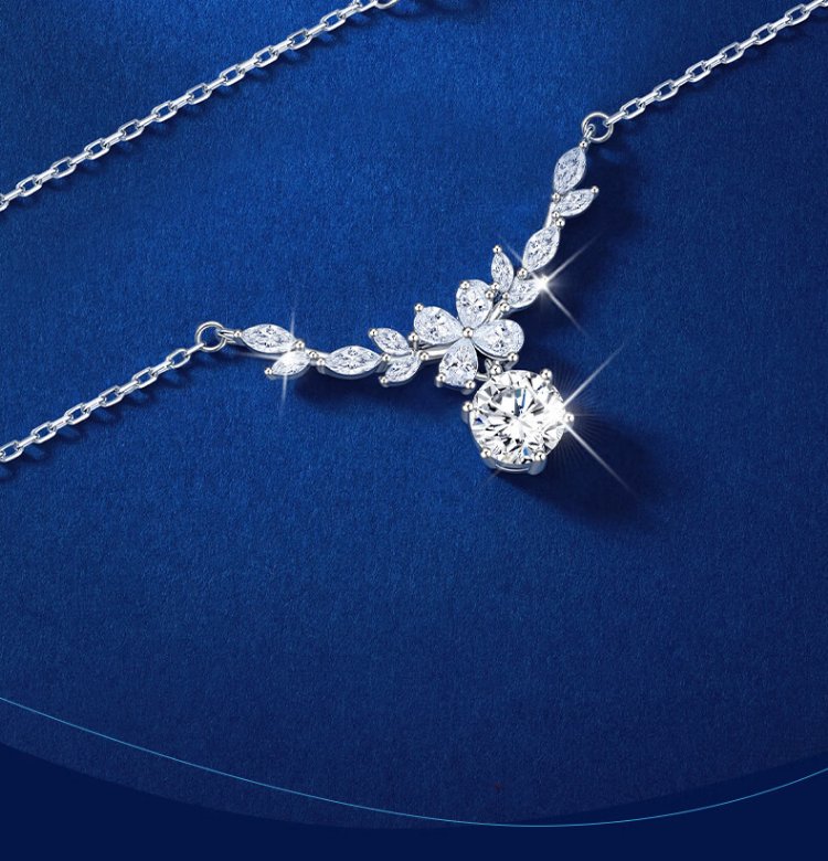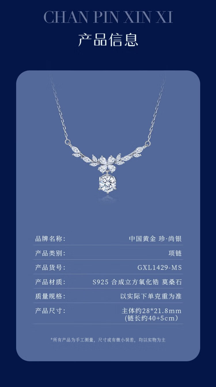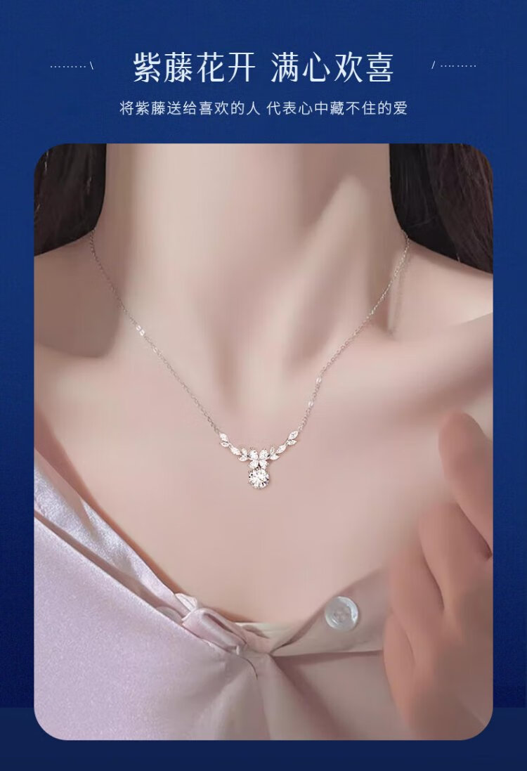 Zhen Shang Silver Chinese Gold One Carat Moissanite S925 Silver Necklace Female Birthday Gift Niche Light Luxury Gift for Girlfriend and Wife