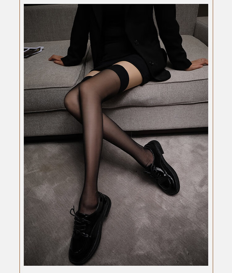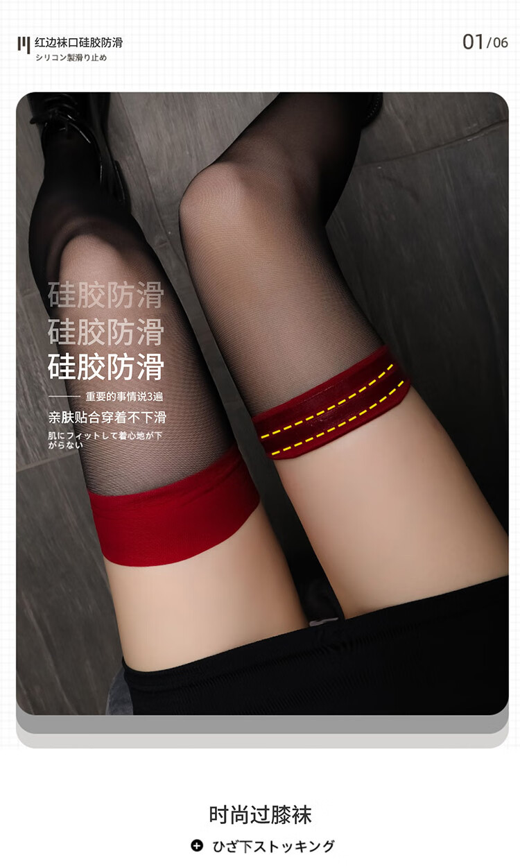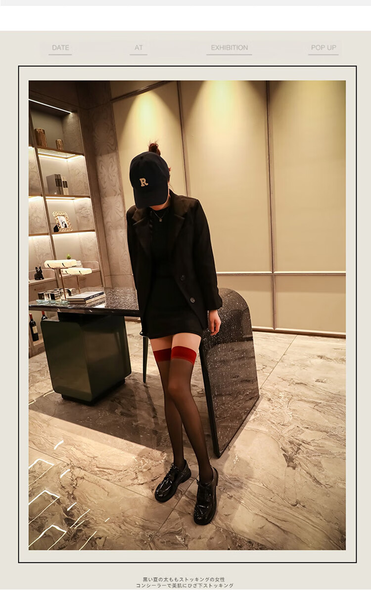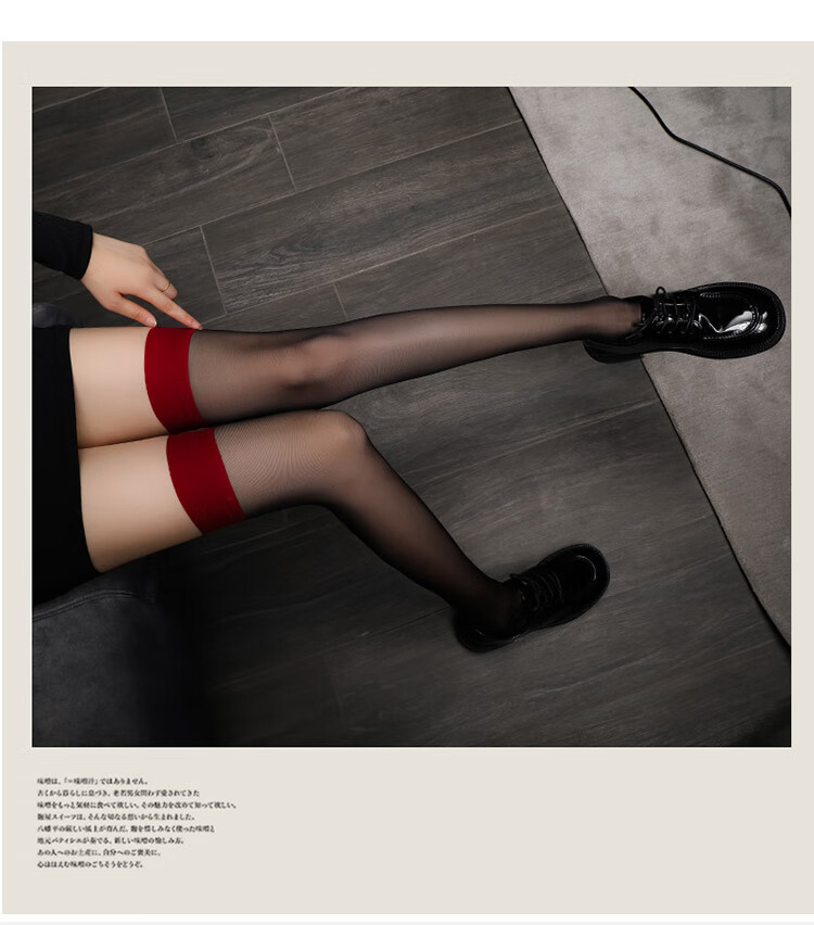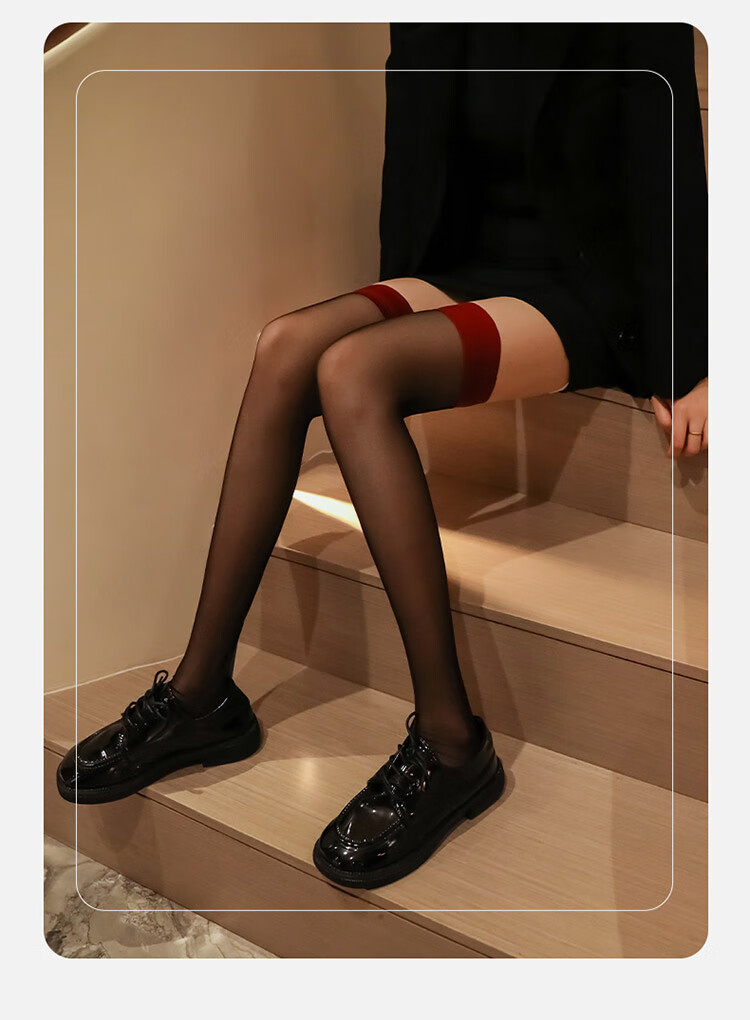 Langsha red-edged black stockings, feminine over-the-knee socks, summer ultra-thin contrasting color half-cut pure lust thigh stockings, 1 each in red and black