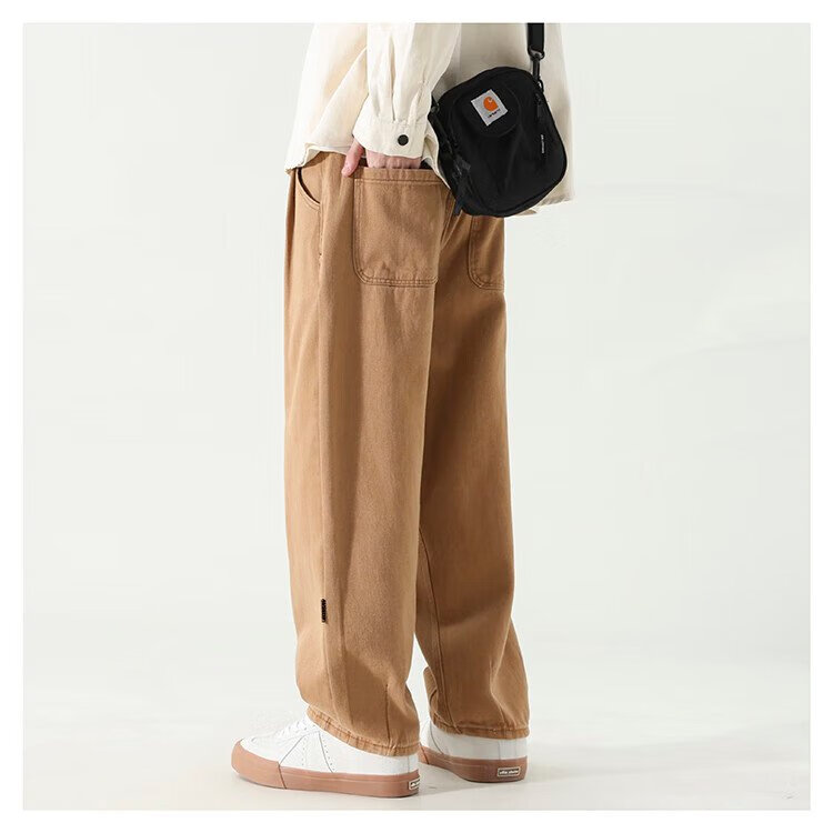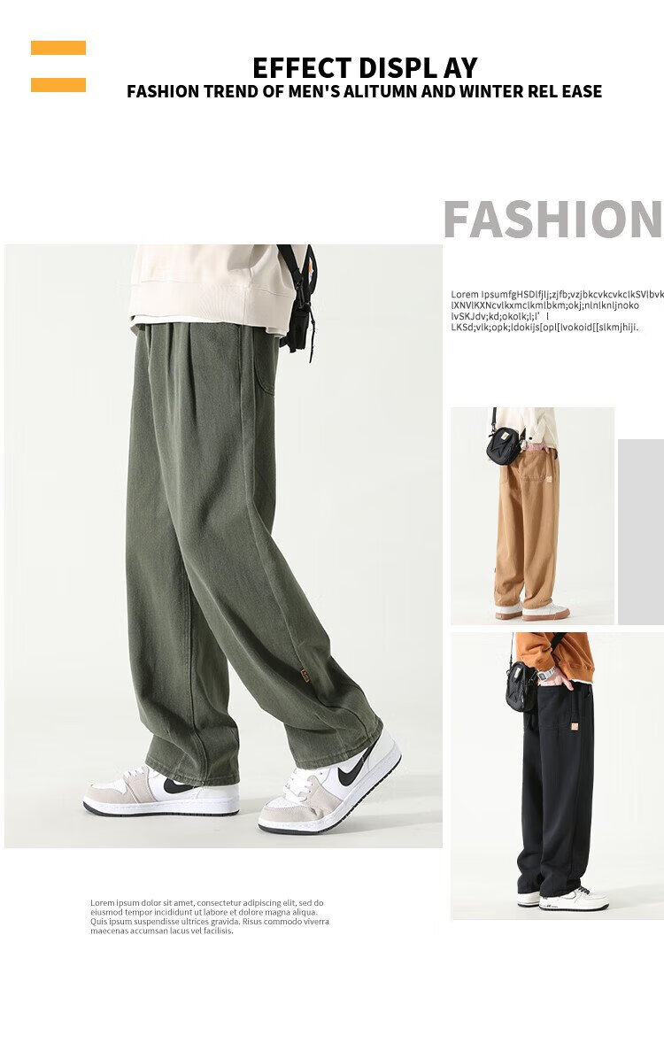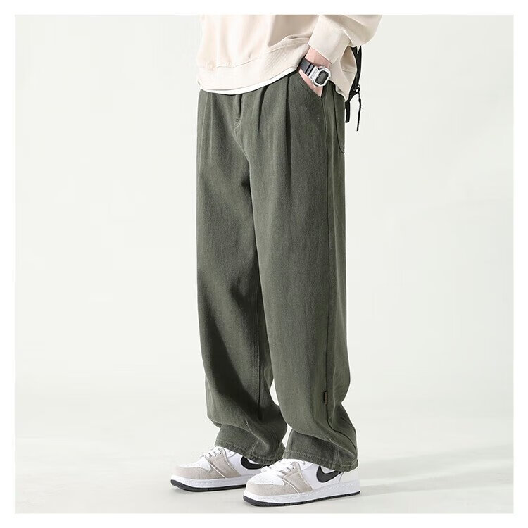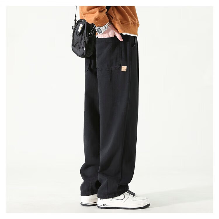 Dingfengbaoluo casual trousers pure cotton loose straight pants autumn wide-leg workwear pants men HM9901 black 2XL