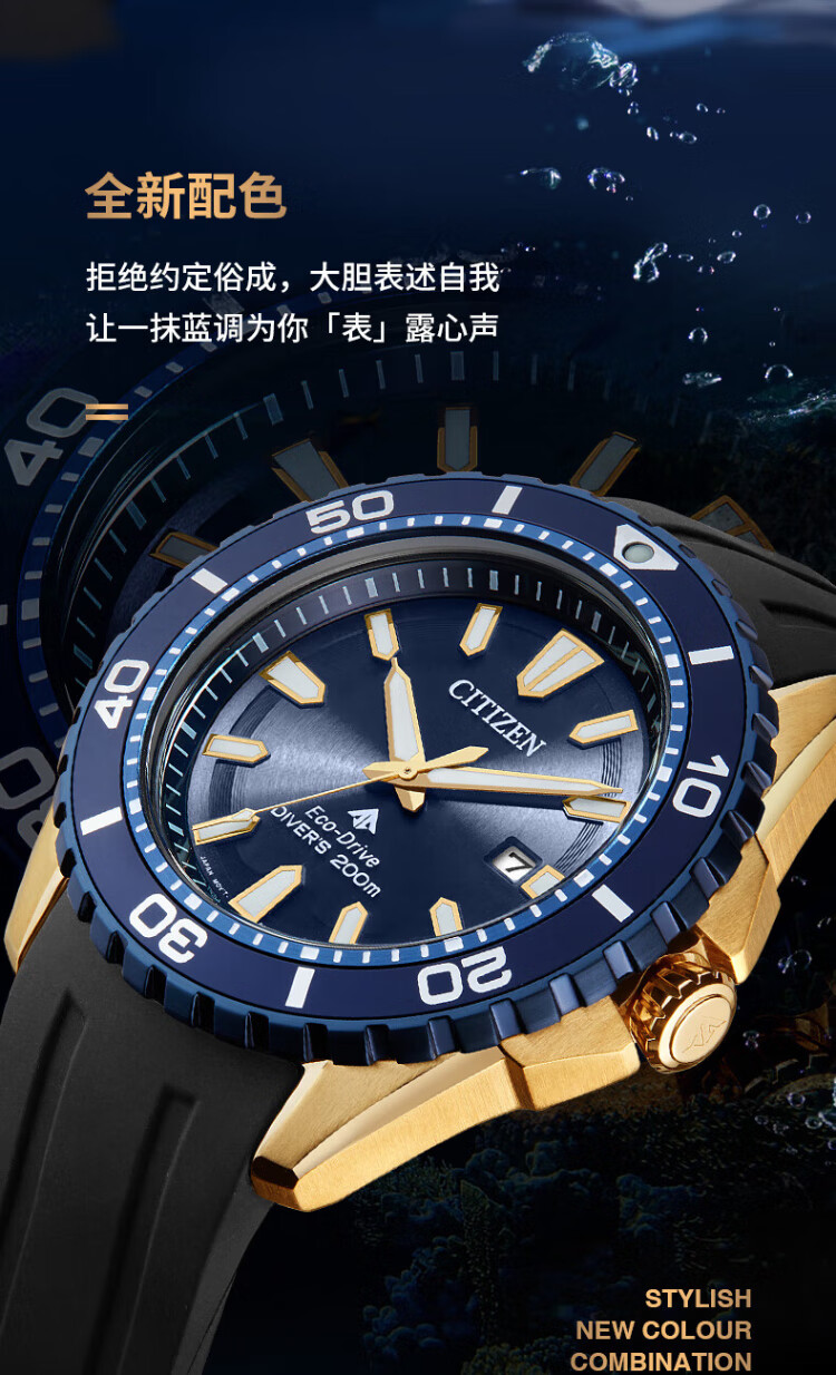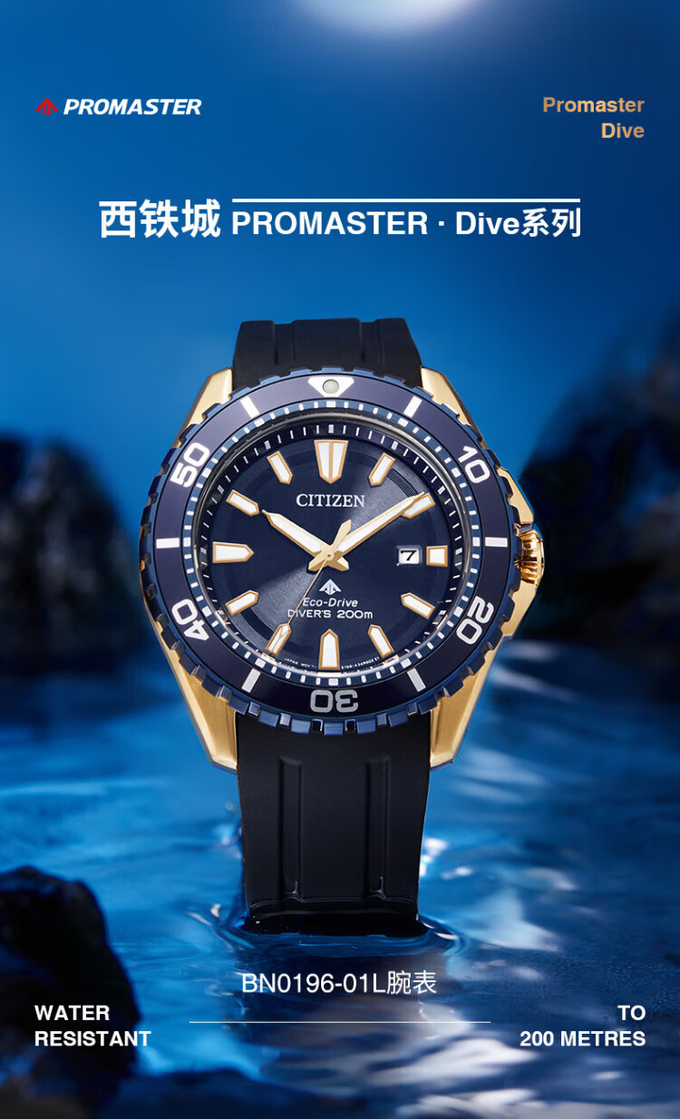 CITIZEN watch men's Japanese and Korean watch light kinetic energy date display dial PU strap sports New Year gift BN0196-01L