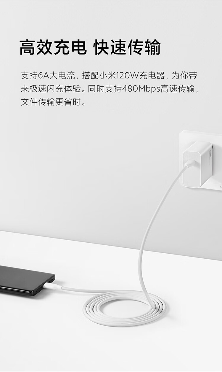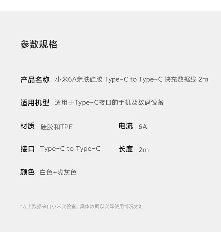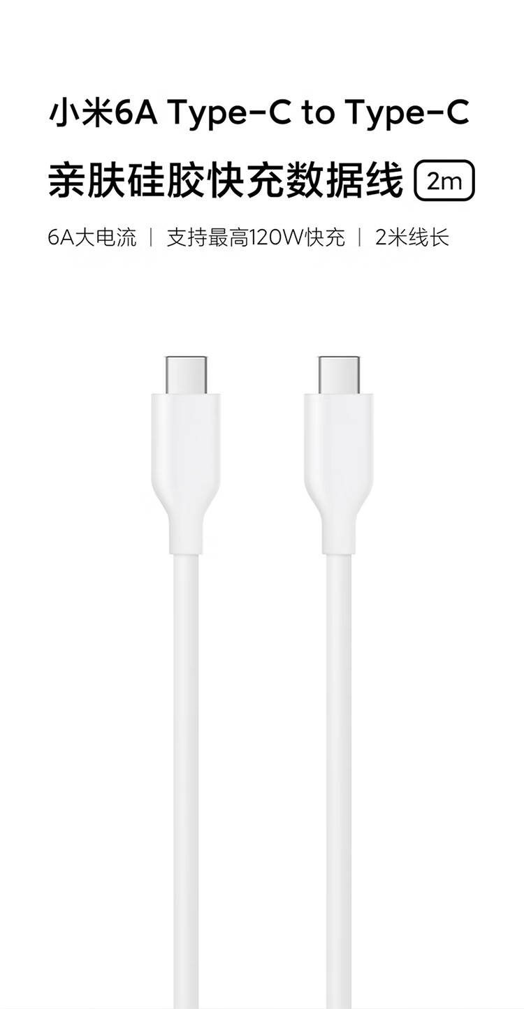 Xiaomi (MI) Xiaomi 6A skin-friendly silicone Type-C to Type-C fast charging data cable 2M