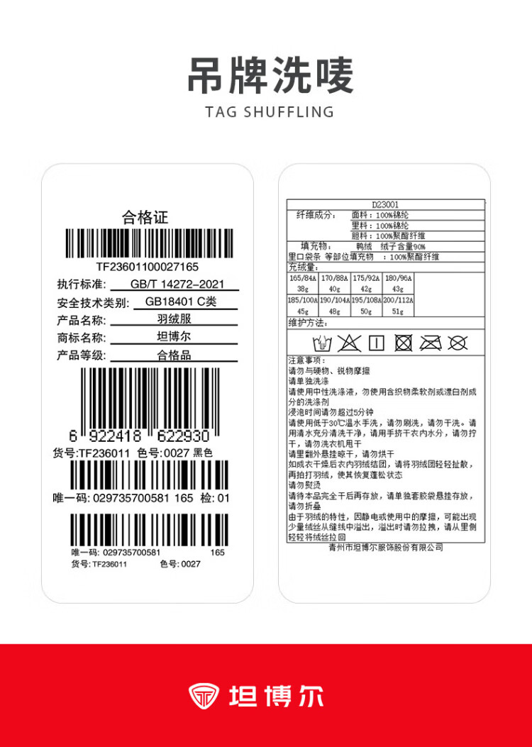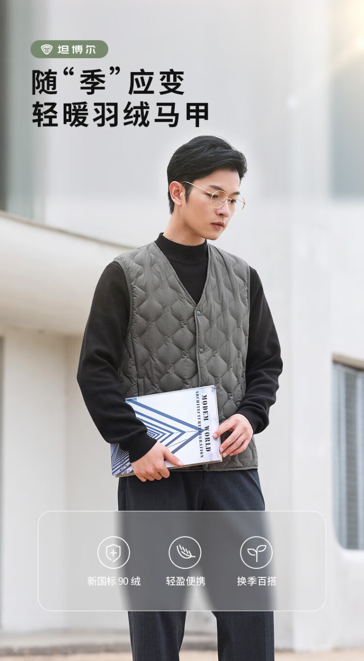 Tambor down vest men's short style inner wear warm and versatile men's vest TF236011 black 175