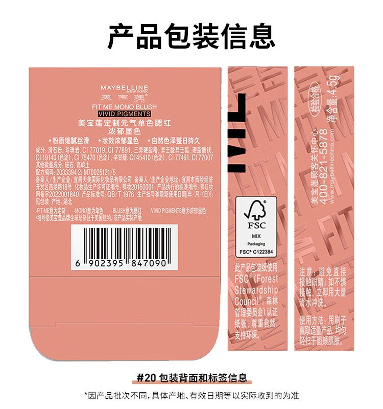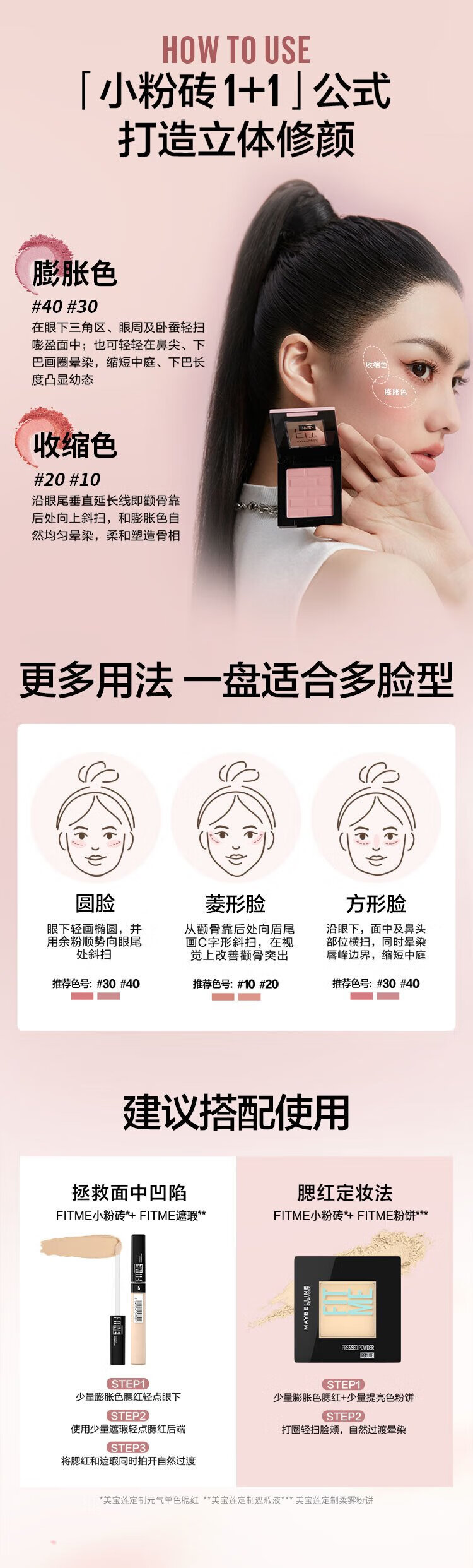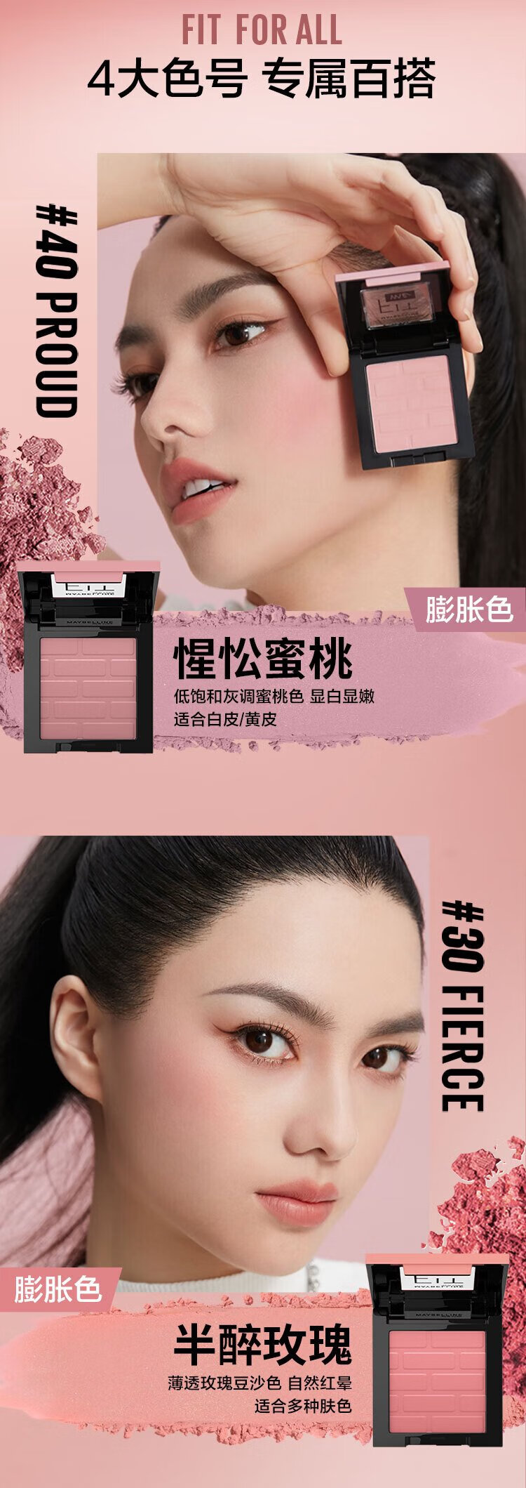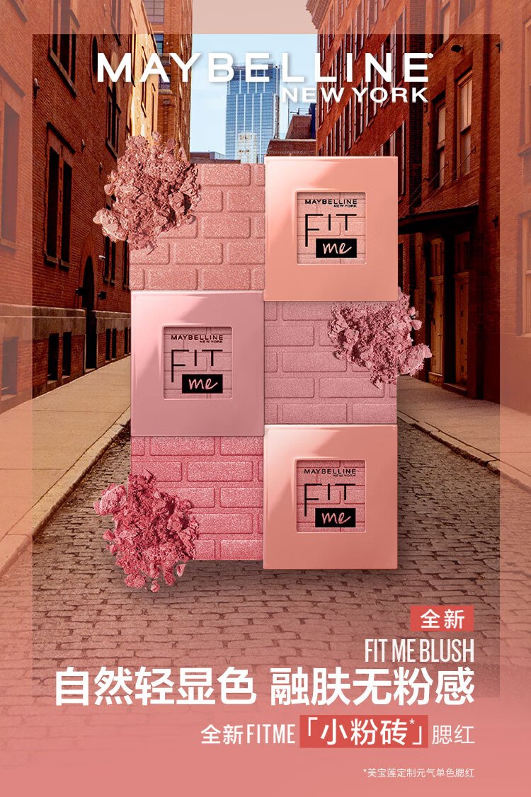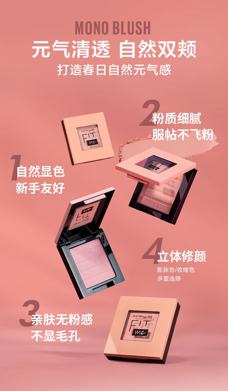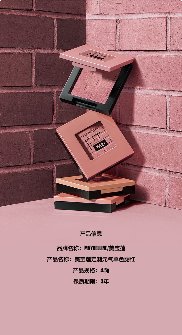 Maybelline Fitme Custom Vitality Single Color Blush Small Pink Brick 20 Ambiguous Apricot Powder 4.5g Birthday Gift for Women