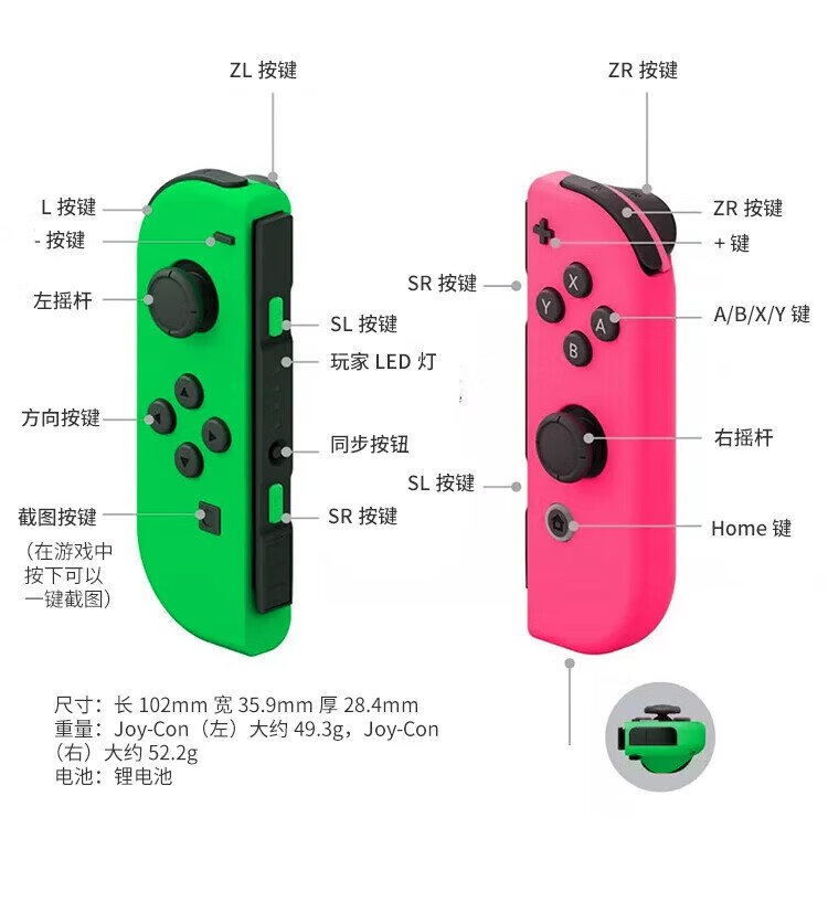 Nintendo NS Controller Pro Joy-Con Switch Left and Right Dual Controller Green Pink
