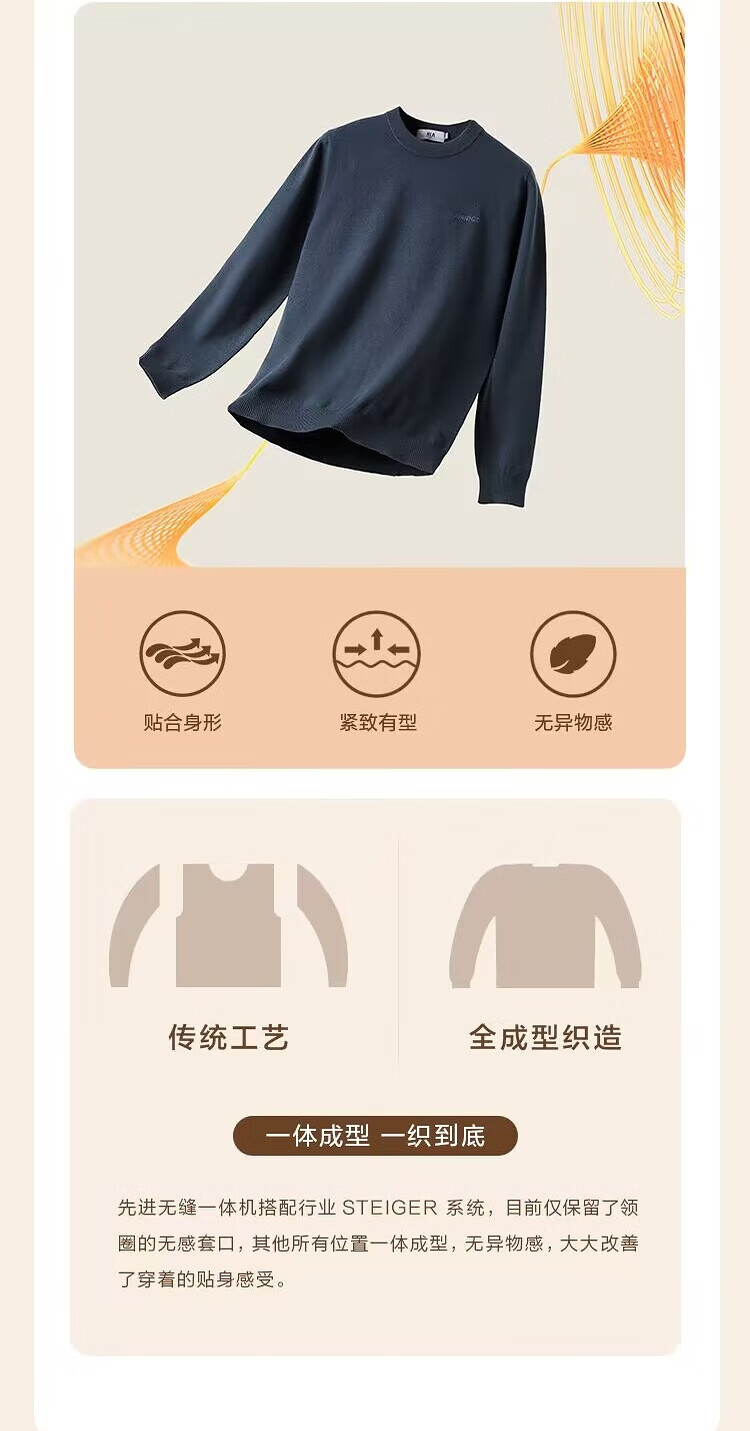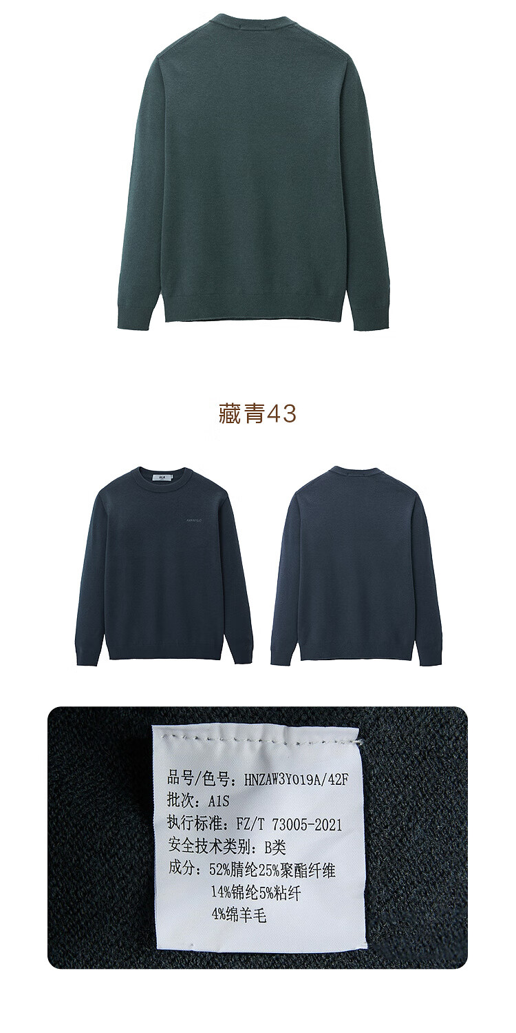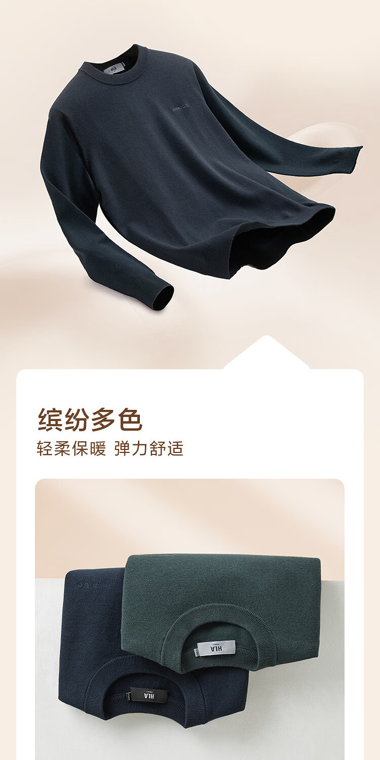 HLA Heilan House brand exclusive long-sleeved sweater for men light business classic round neck sweater with wool