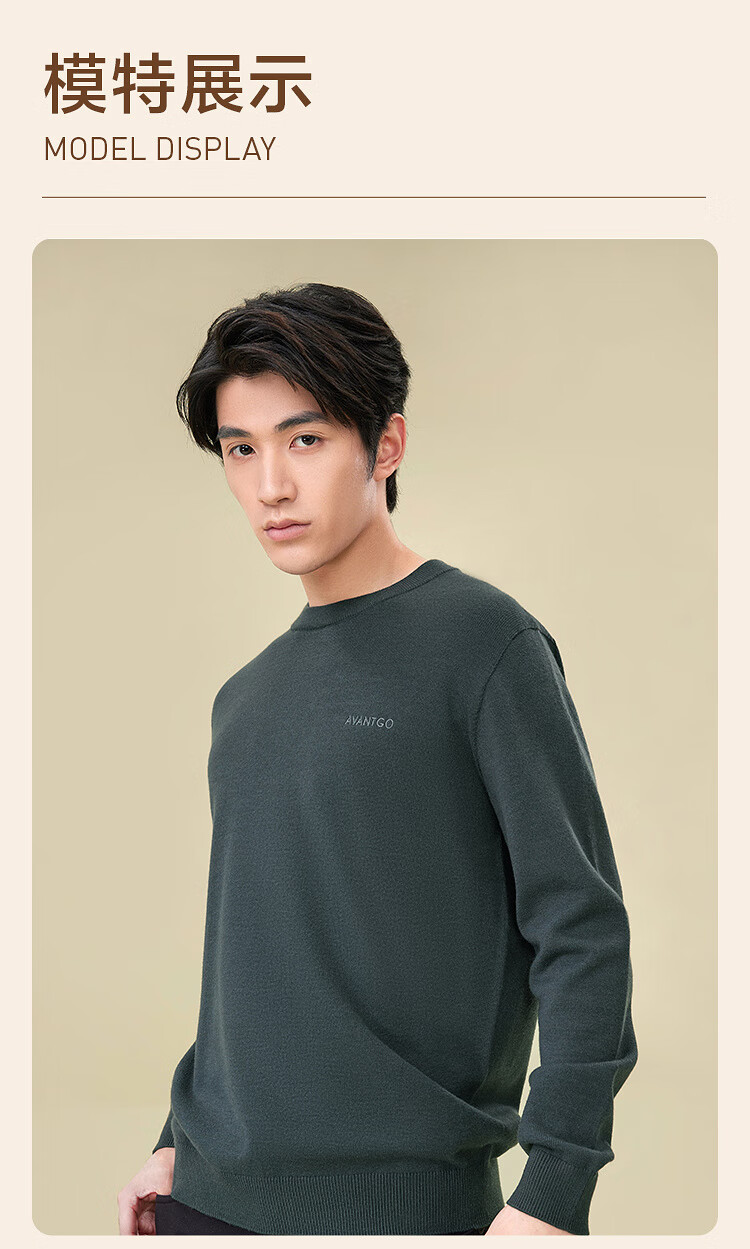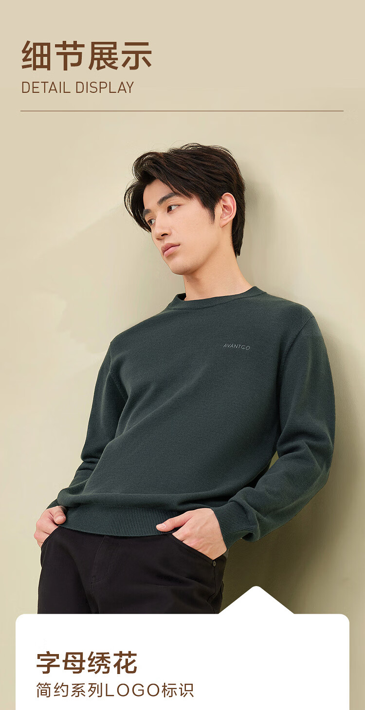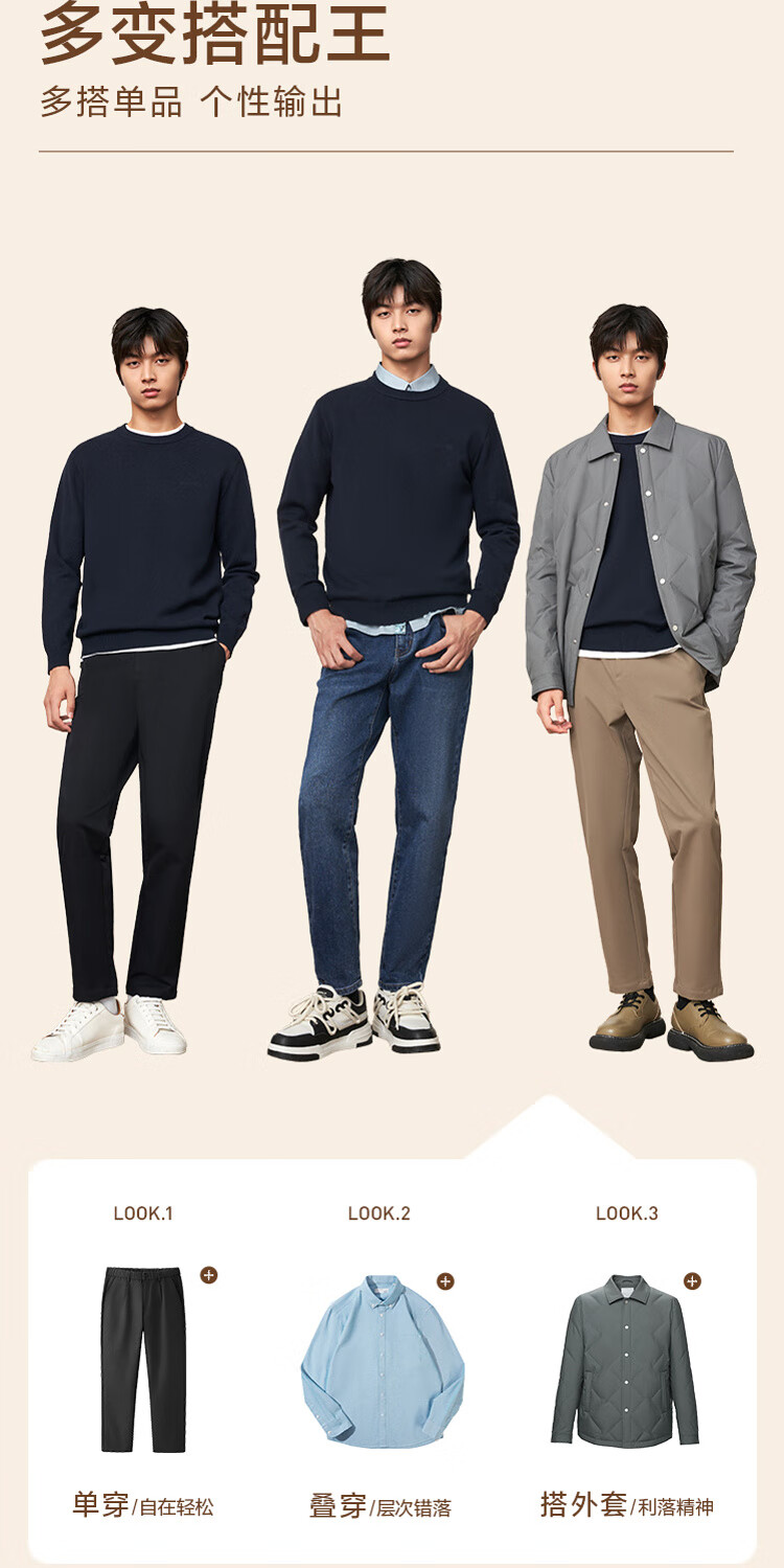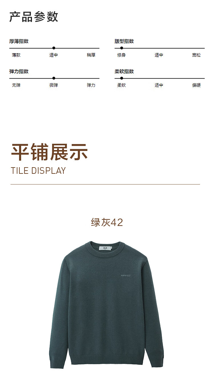 HLA Heilan House brand exclusive long-sleeved sweater for men light business classic round neck sweater with wool