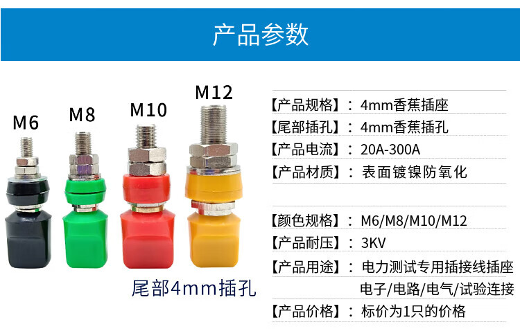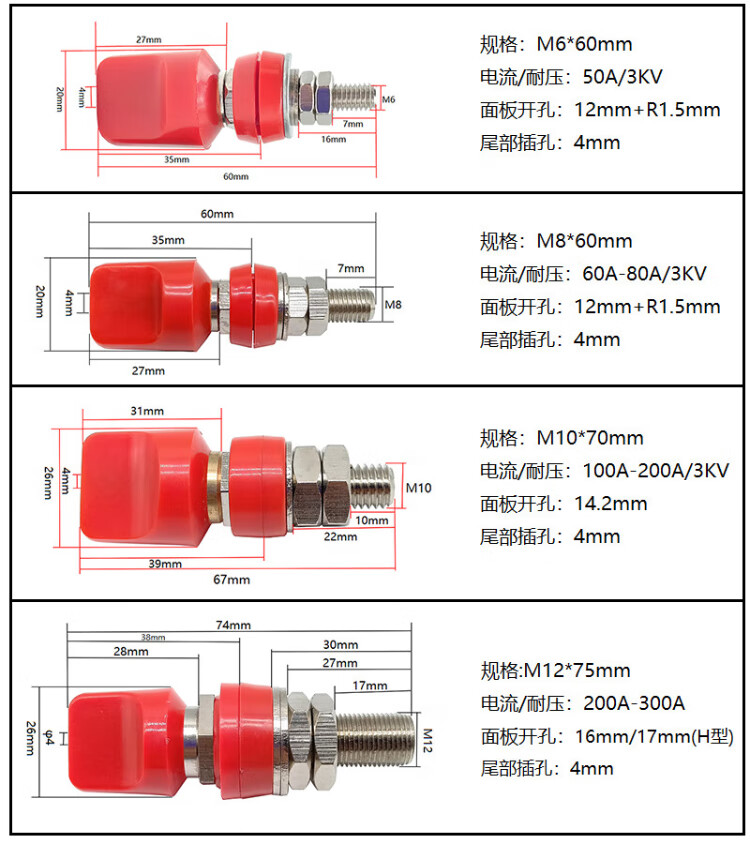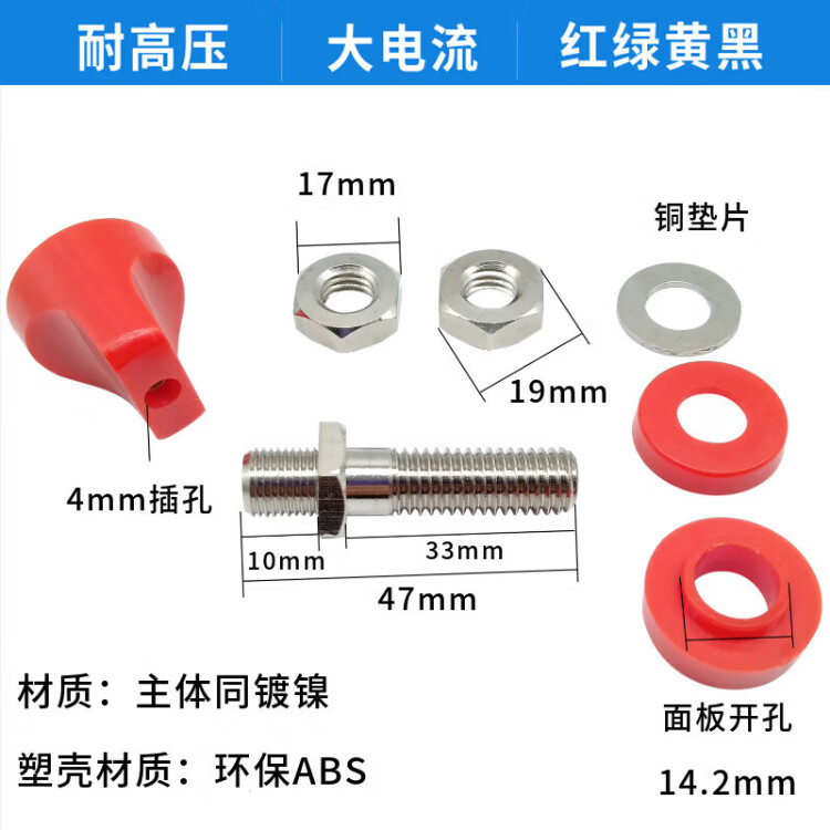 Cast solid JXZ binding post banana plug socket panel opening terminal high current grounding post M6*60mm binding post 50A black 1 piece