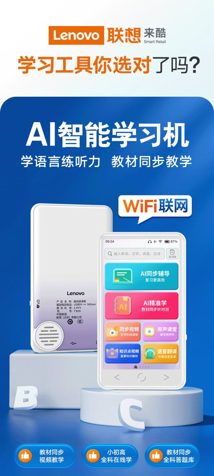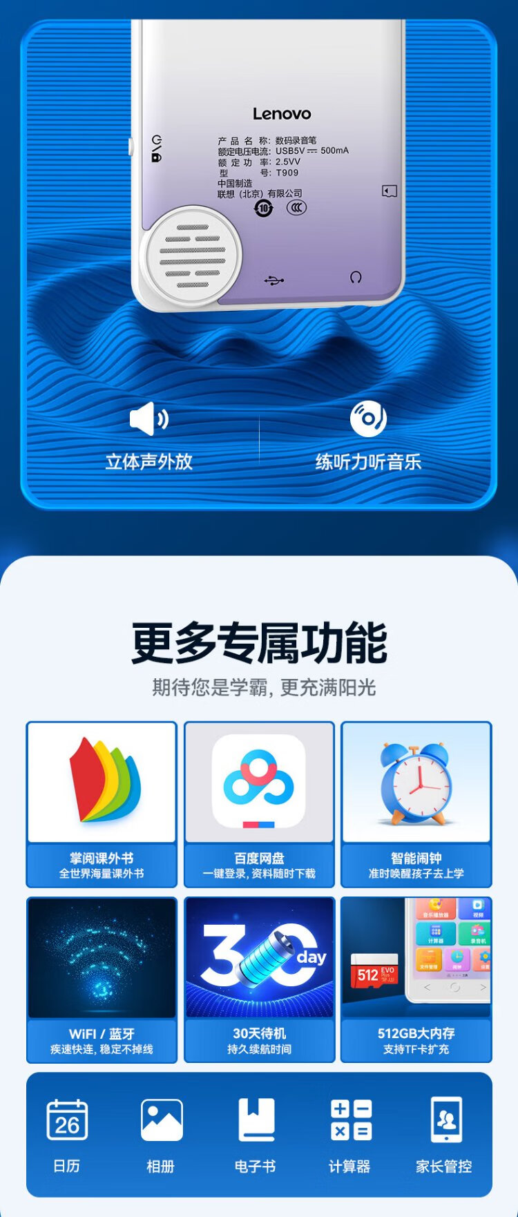 Lenovo T909 16GMP4/MP3 player WIFI Internet access English learning machine listening treasure repeater MP5 intelligent answering dictionary recording pen