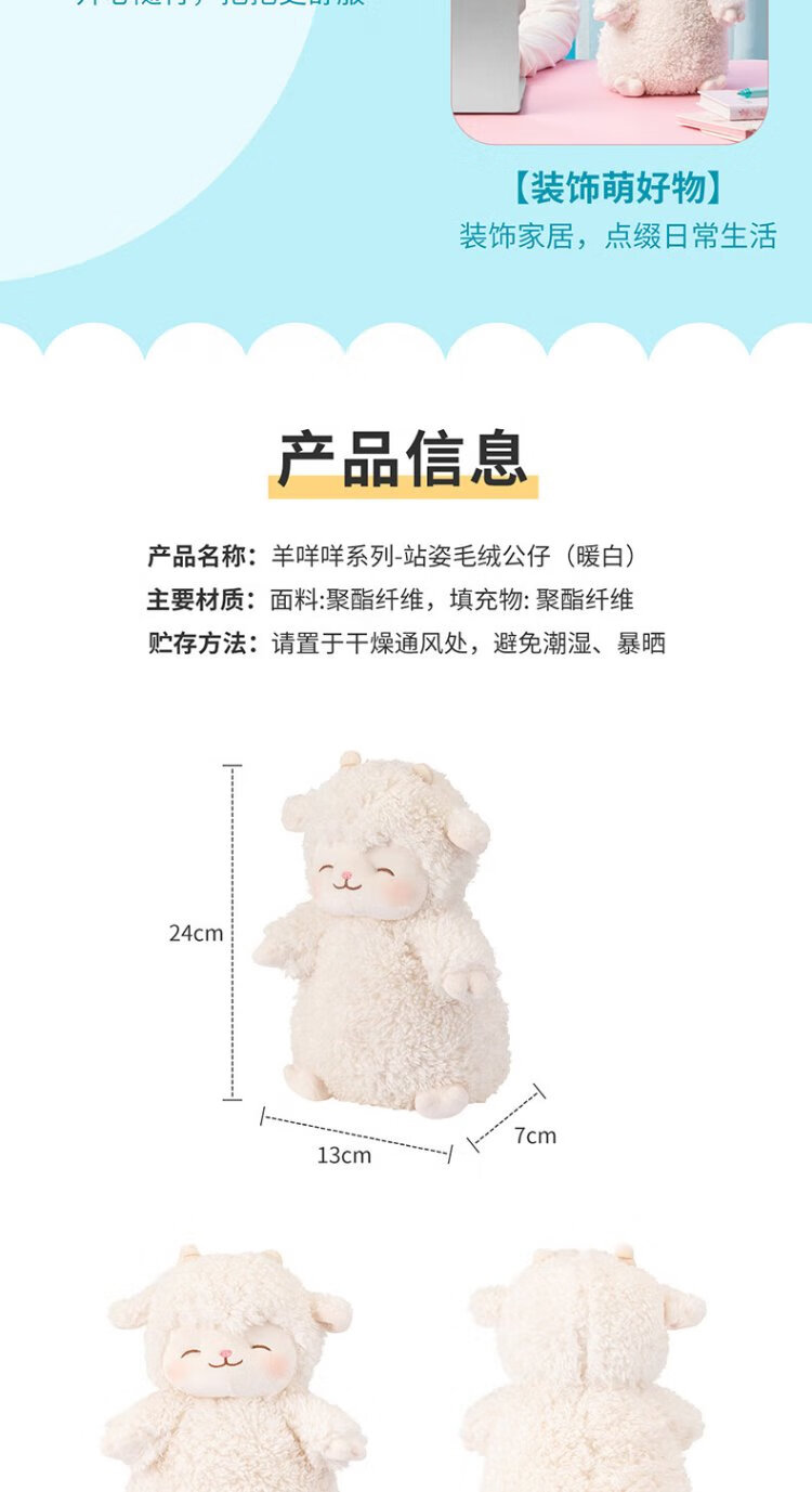 MINISO Sheep Standing Plush Doll Toy Doll Pillow for Girlfriend and Child Birthday Gift Warm White