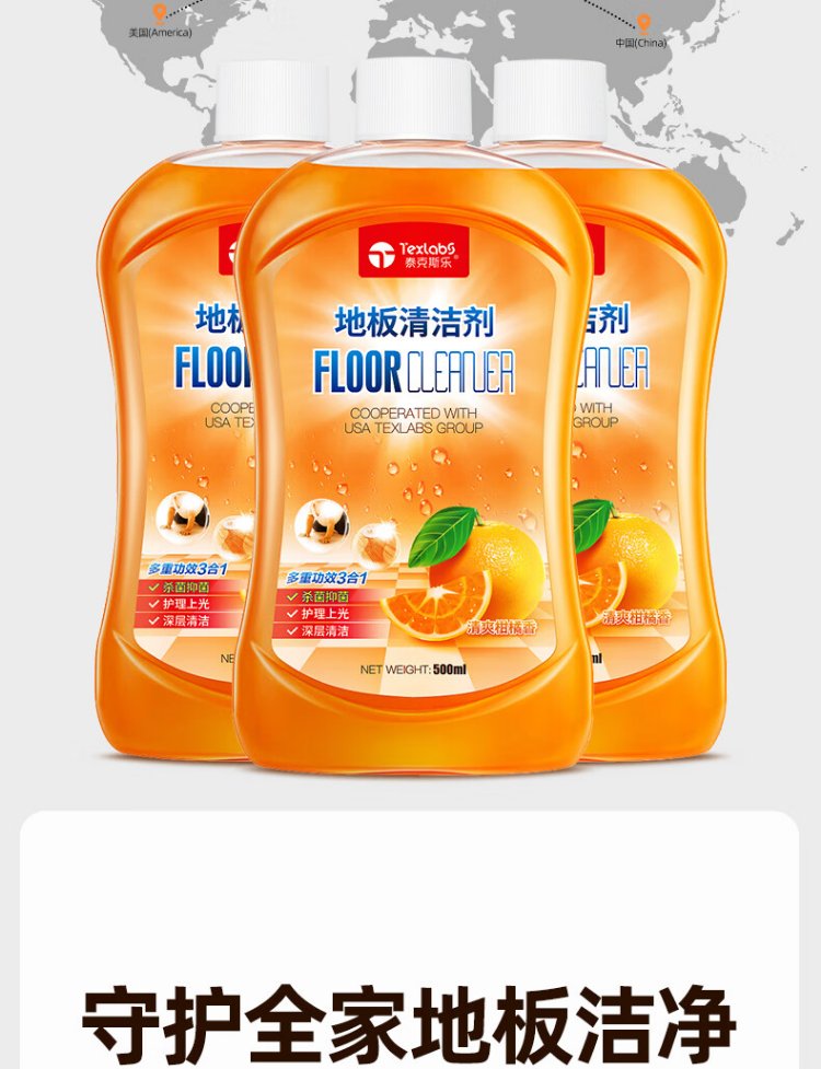 Texlabs floor cleaner, washing machine cleaning fluid, marble tile cleaning, decontamination and bright mopping fluid 500ml*3