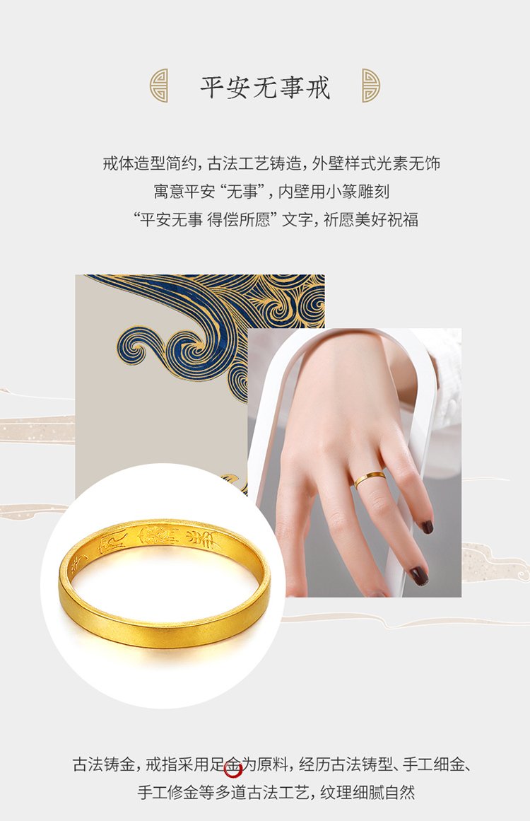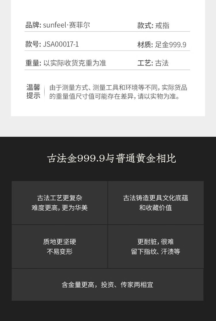 Saphire gold ring pure gold 999.9 ancient gold safe and sound ring ring 14# about 2.05 grams