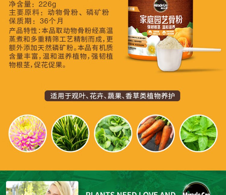 Meileke home gardening bone meal plant flower and green plant fertilizer flower fertilizer advanced version 226g