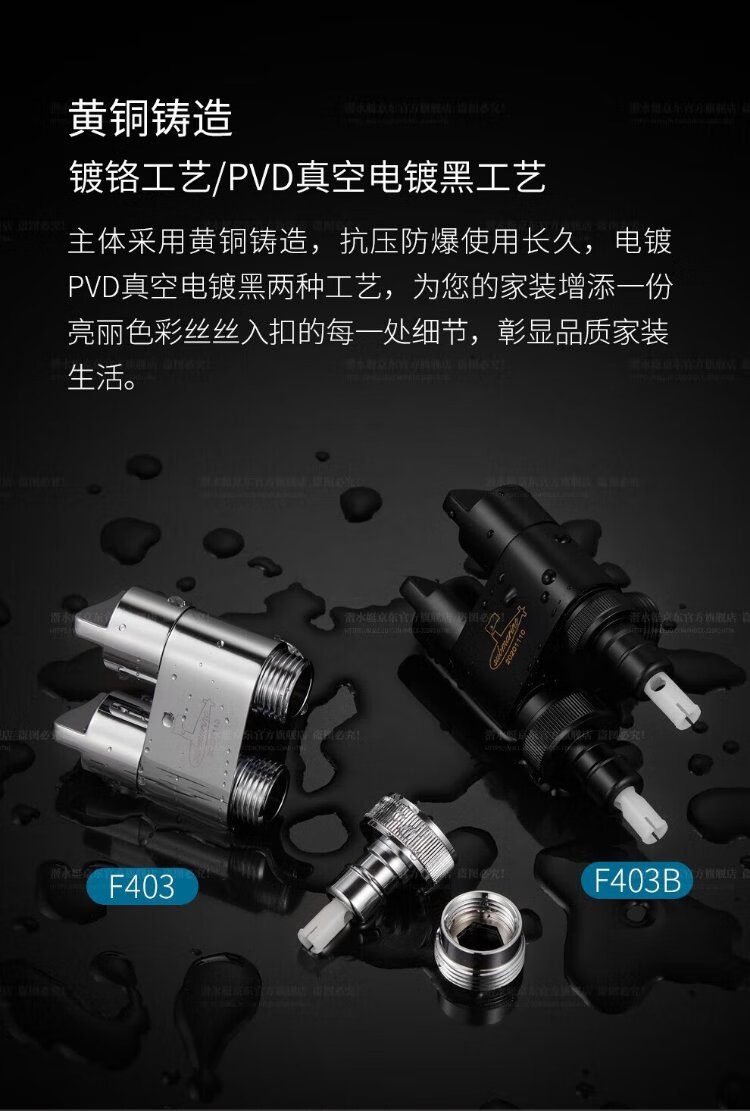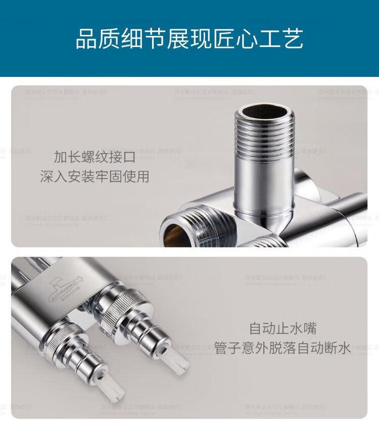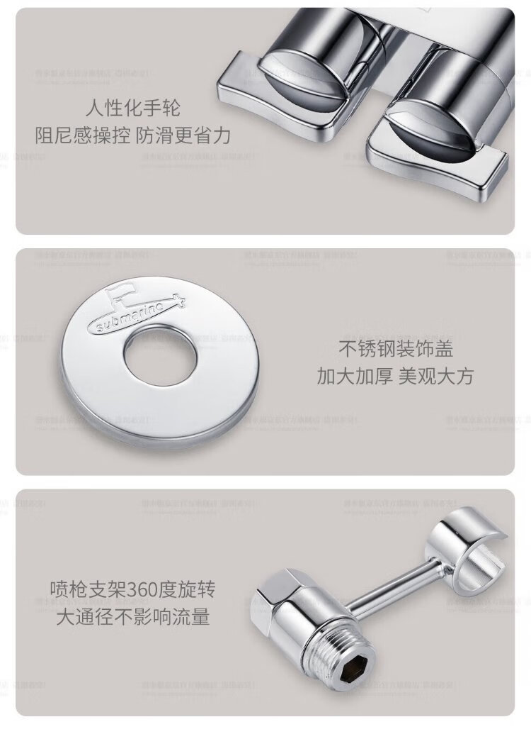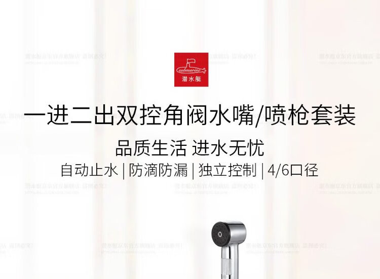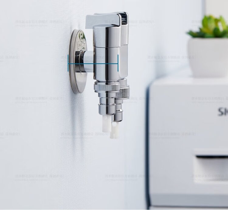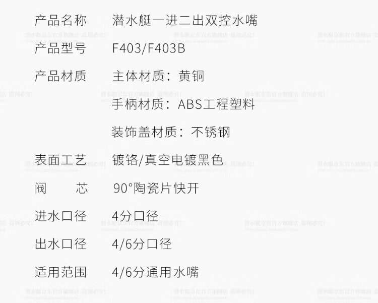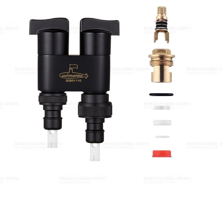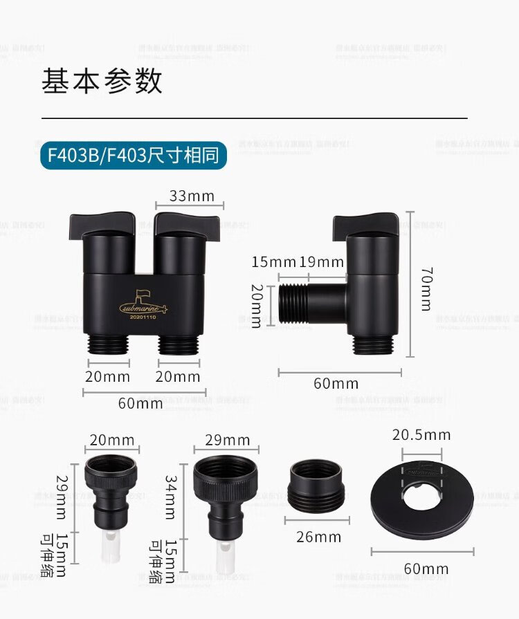 Submarine F403 angle valve, one in, two out, three-way, double handle, double control, single outlet, brass body, ceramic valve core, 4-point water inlet and outlet