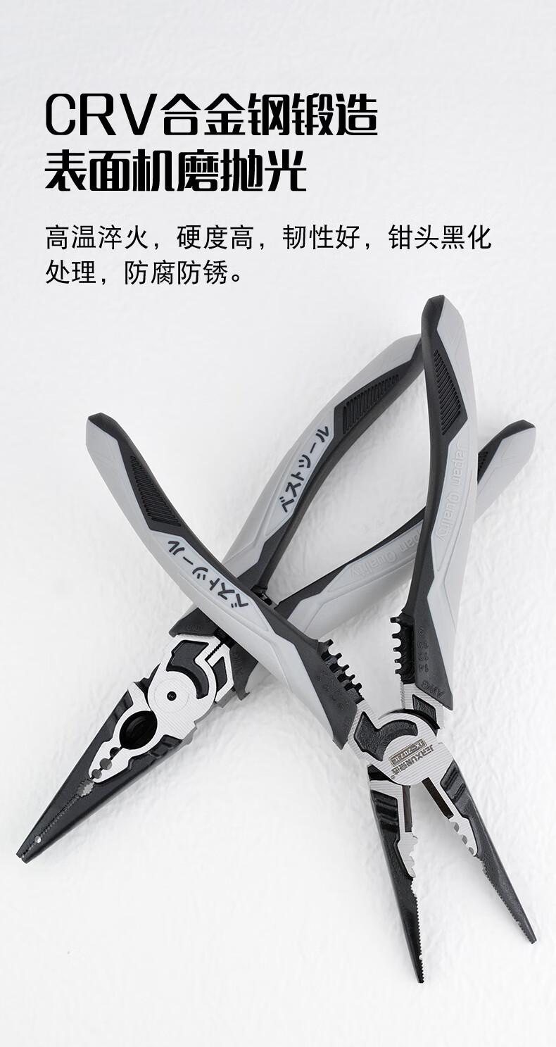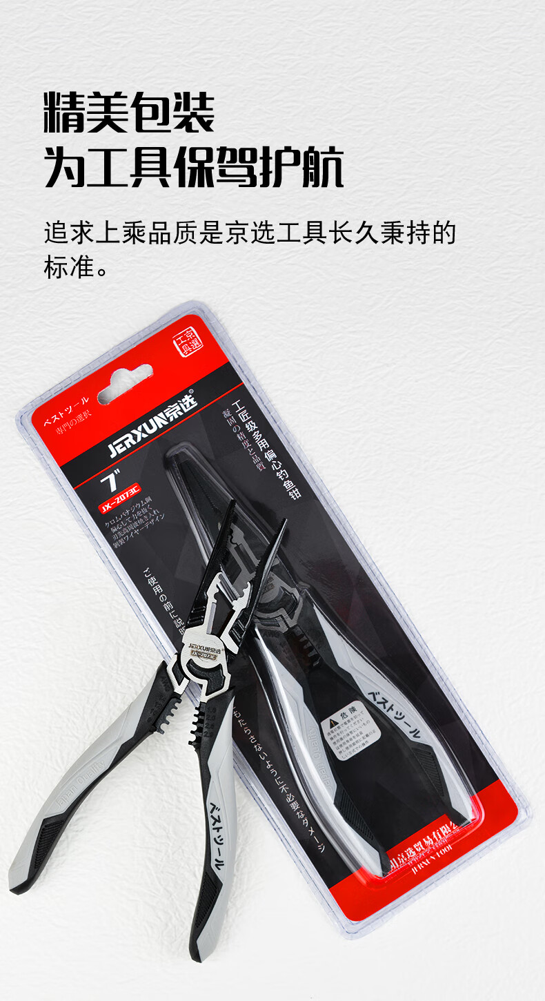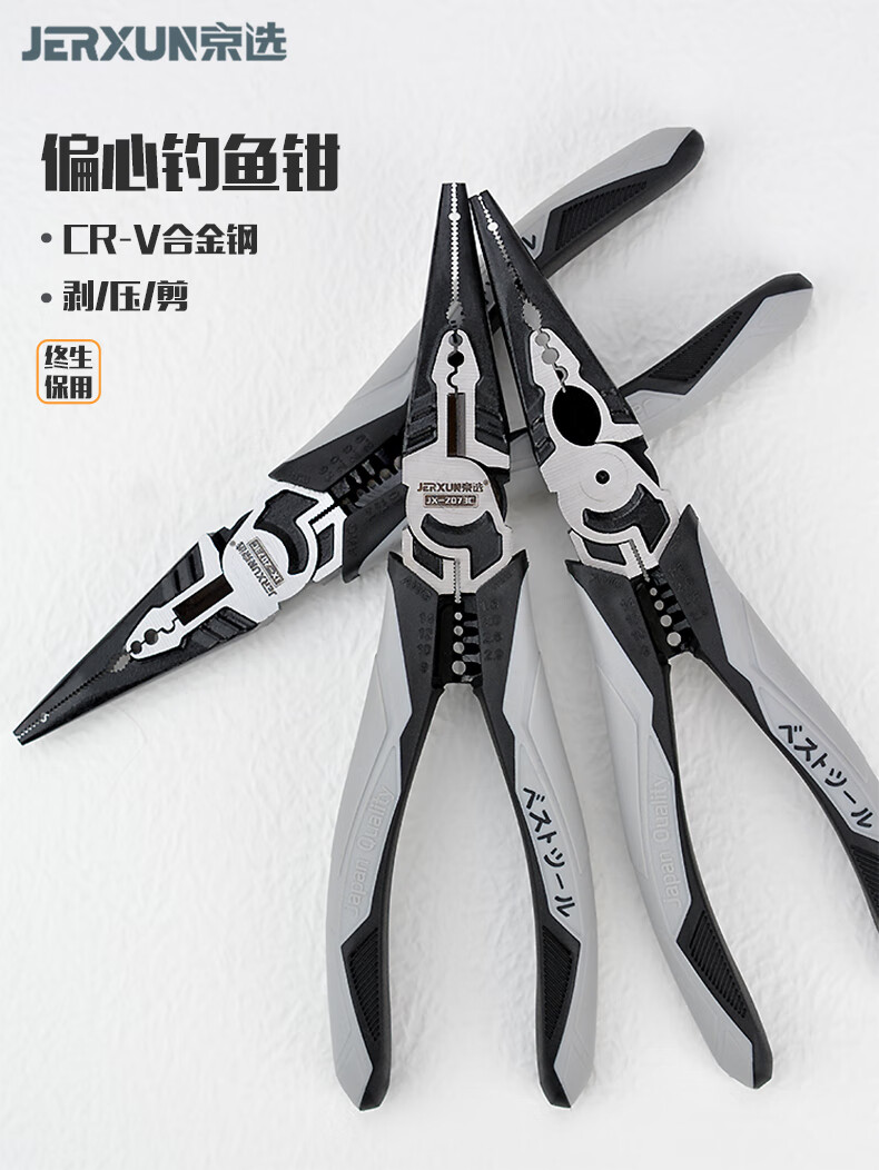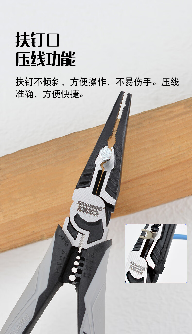 JERXUN multifunctional needle nose pliers, fishing pliers, electrician's crimping wire stripping wire cutting pliers, wire pulling pliers, industrial grade 7-inch vise