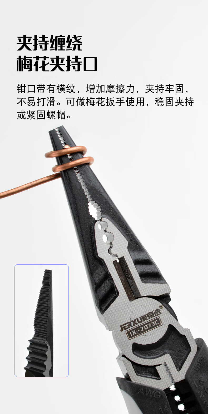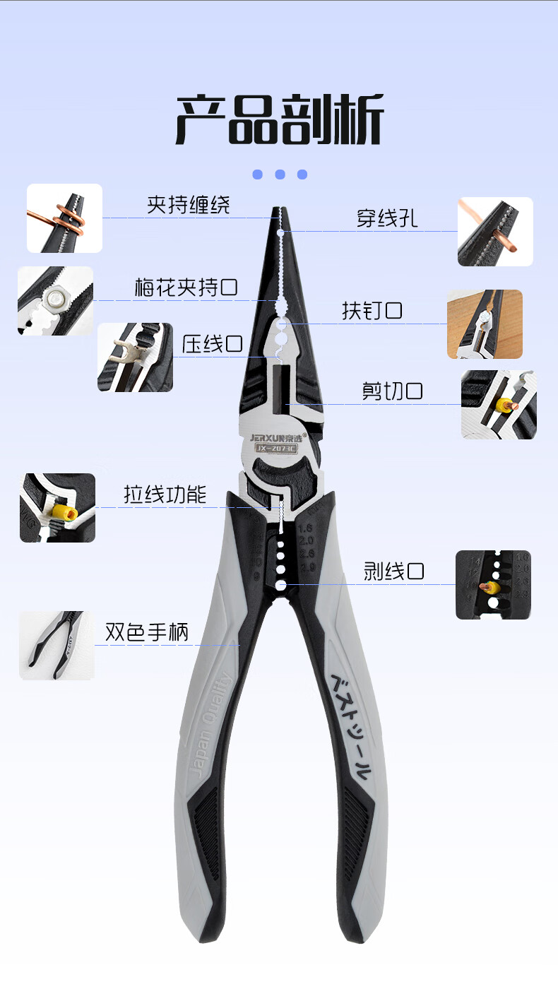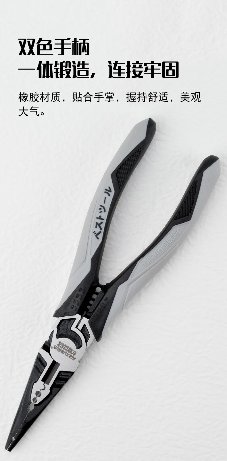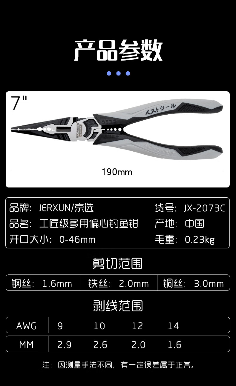 JERXUN multifunctional needle nose pliers, fishing pliers, electrician's crimping wire stripping wire cutting pliers, wire pulling pliers, industrial grade 7-inch vise