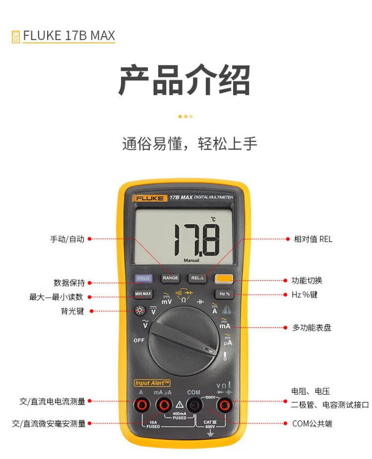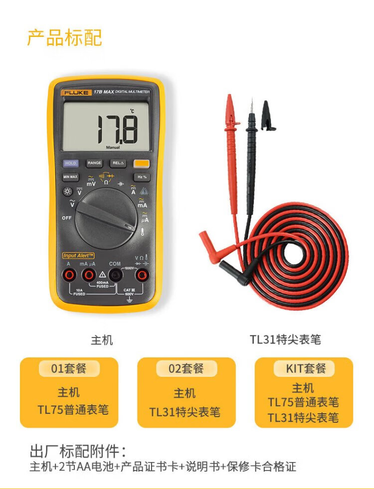 FLUKE 17B MAX KIT digital multimeter, handheld multimeter, multimeter, ammeter, 17B+ upgraded model