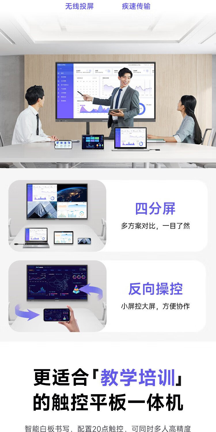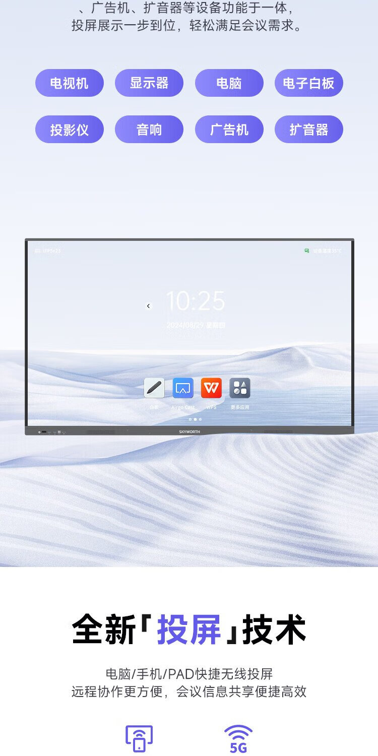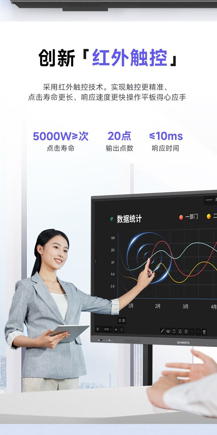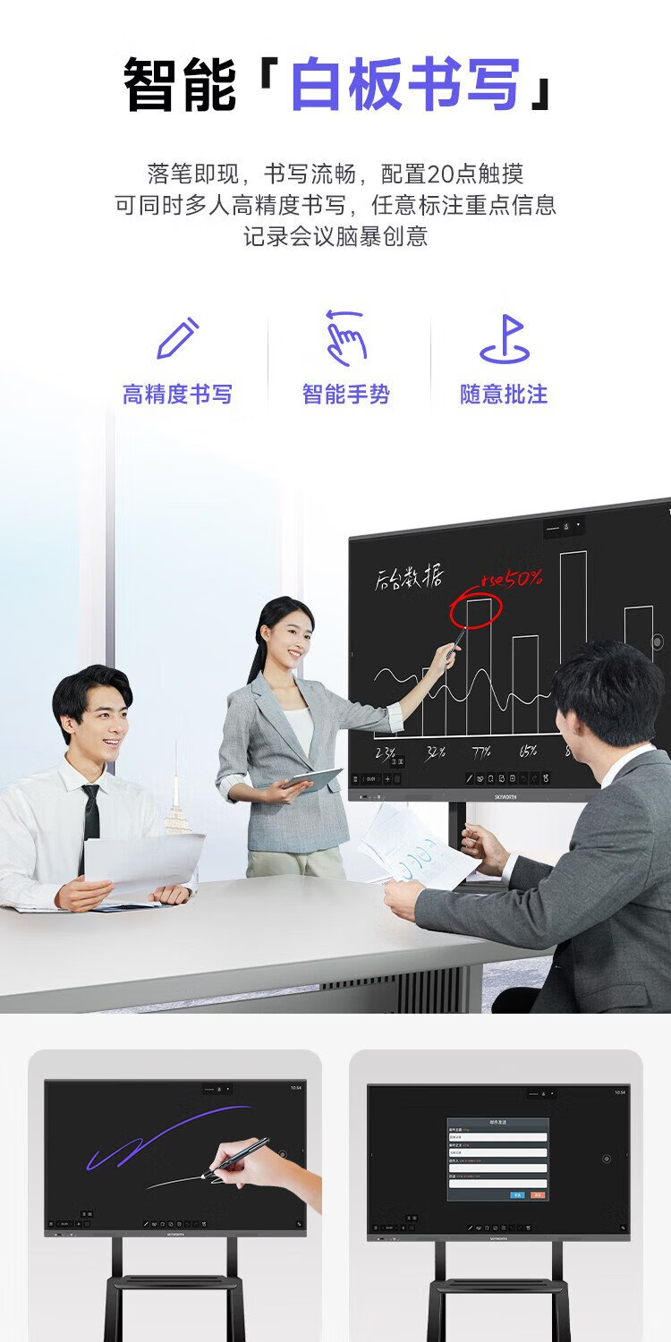 Skyworth 75-inch conference tablet all-in-one machine conference display teaching all-in-one touch screen MT7511 host + screen projector + mobile stand