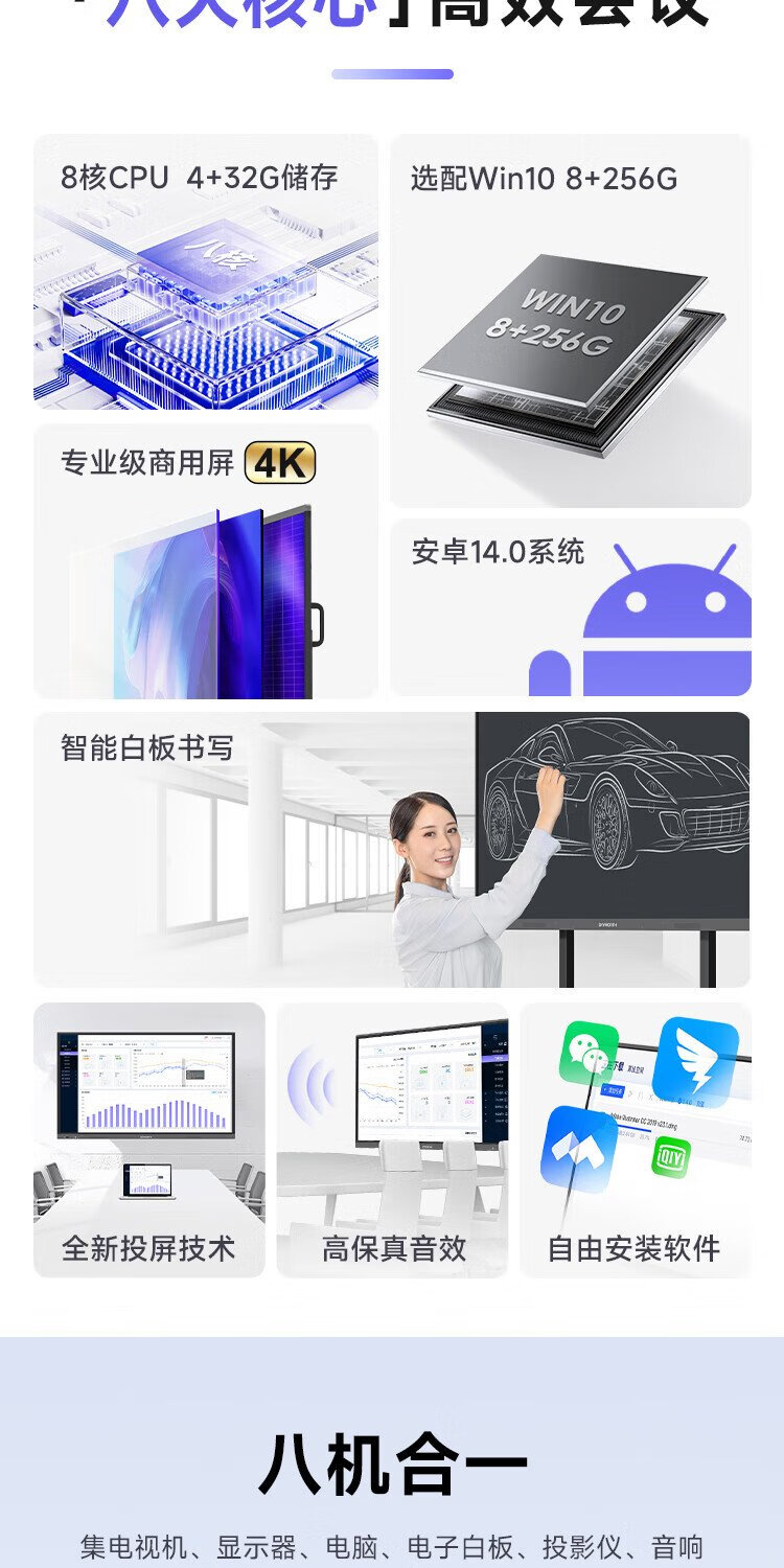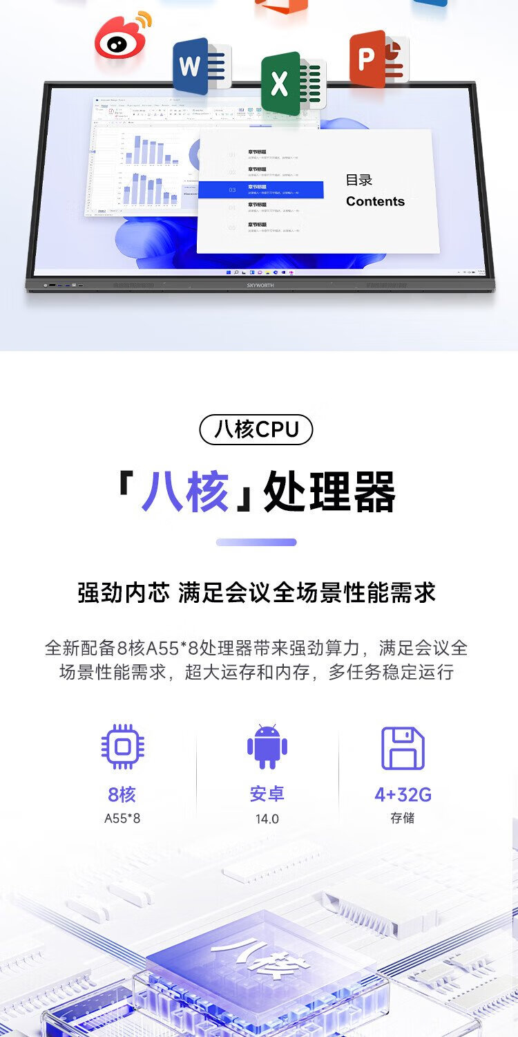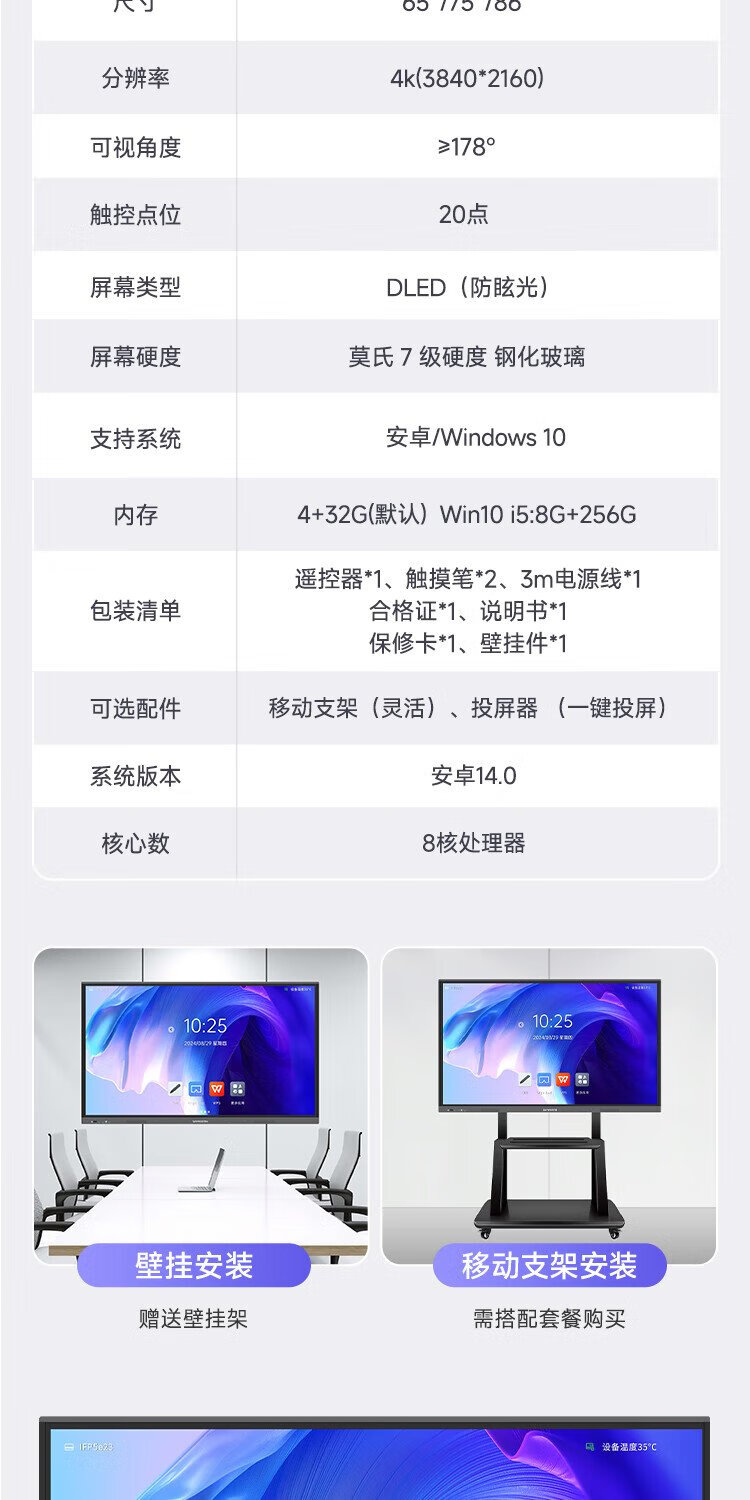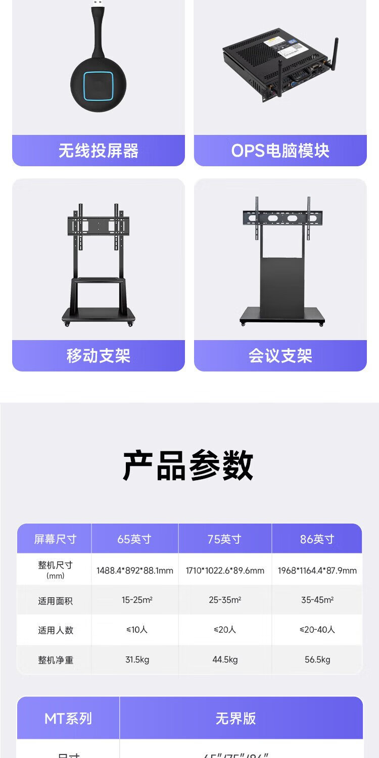 Skyworth 75-inch conference tablet all-in-one machine conference display teaching all-in-one touch screen MT7511 host + screen projector + mobile stand