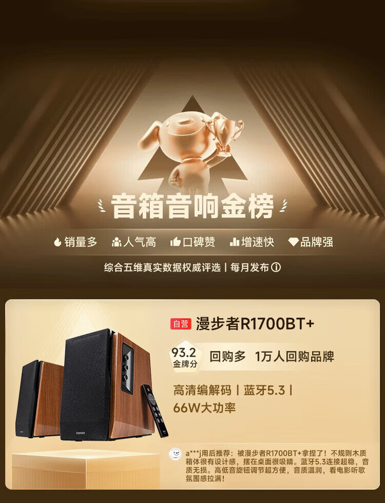 Edifier (EDIFIER) R1700BT+ Classic New Upgrade Desktop 2.0 Bluetooth Computer Speaker Audio Bluetooth 5.3 High Fidelity Home Living Room TV Audio Gift