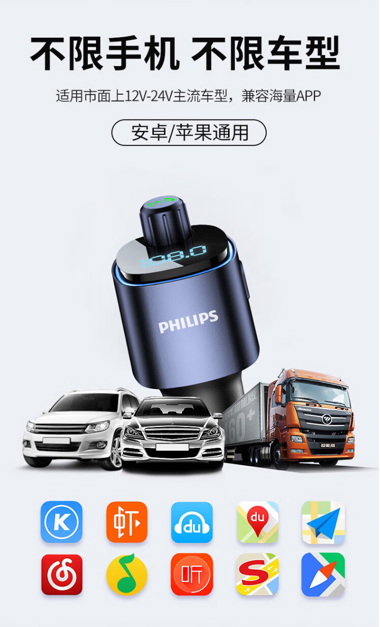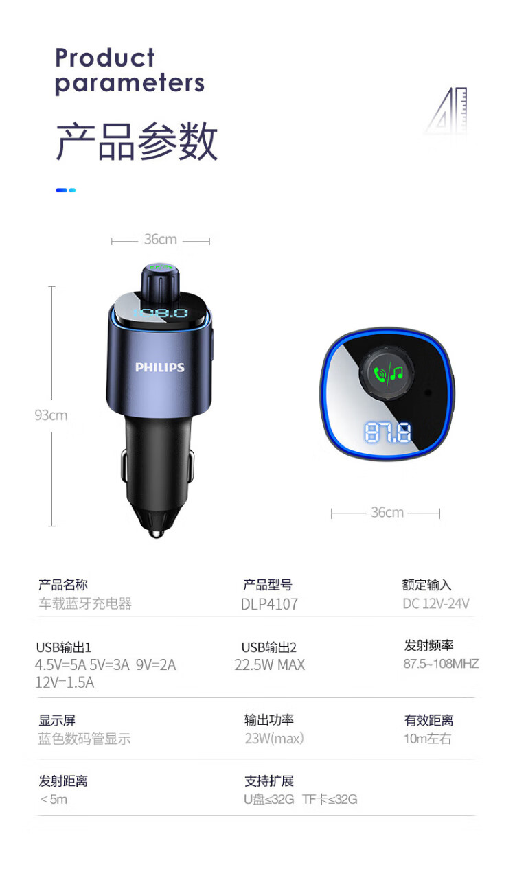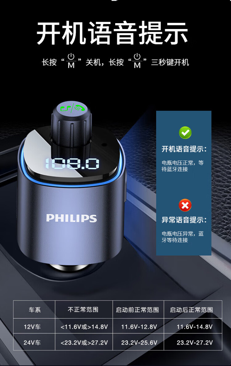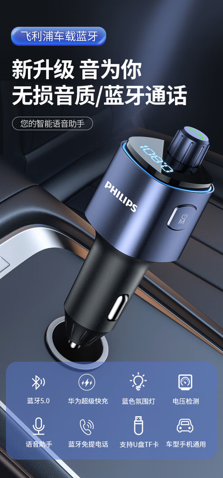 Philips car Bluetooth receiver charger fast charging player car cigarette lighter multi-function converter 4107