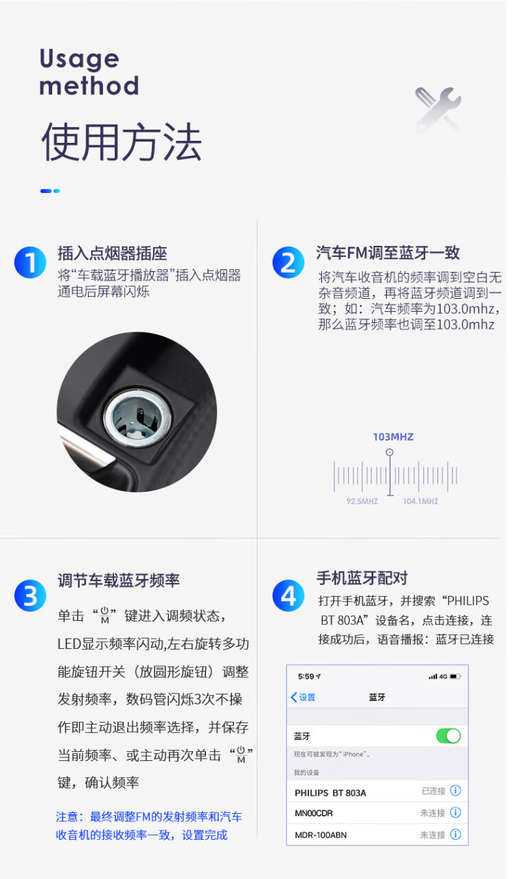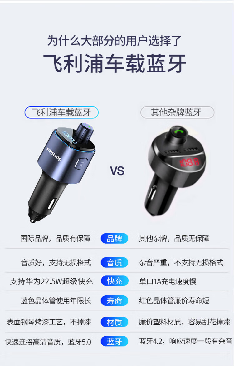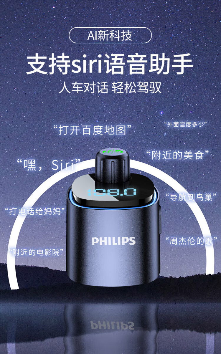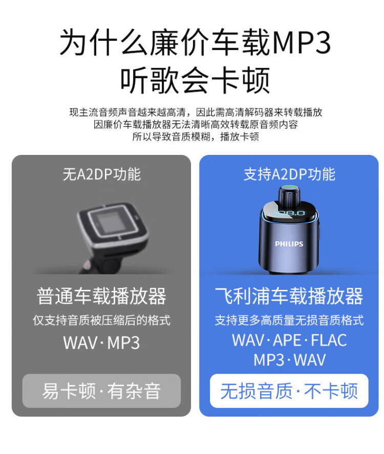 Philips car Bluetooth receiver charger fast charging player car cigarette lighter multi-function converter 4107