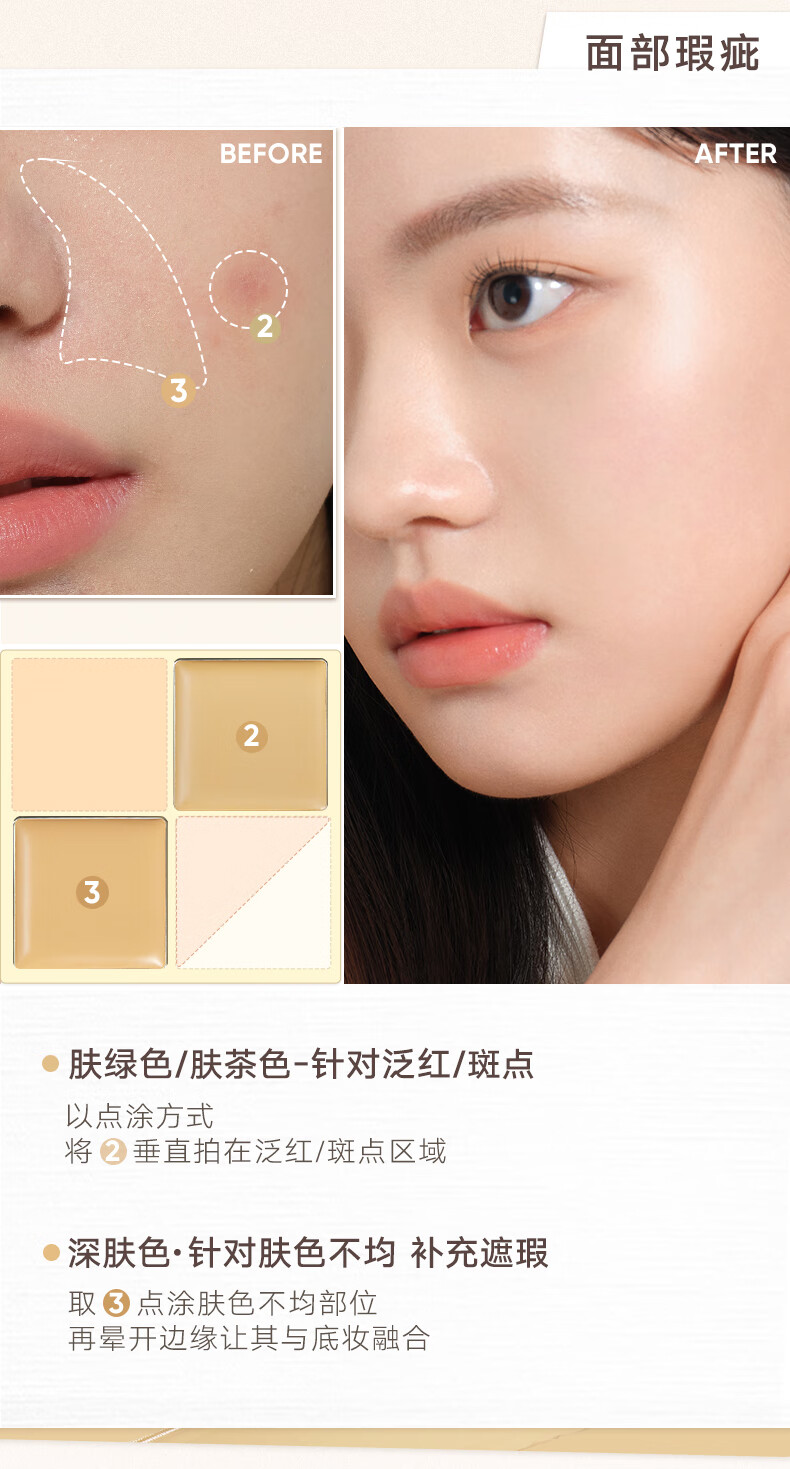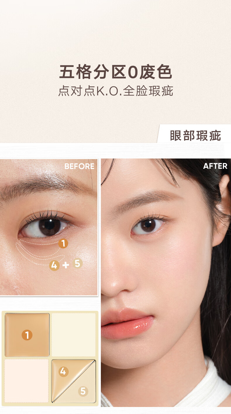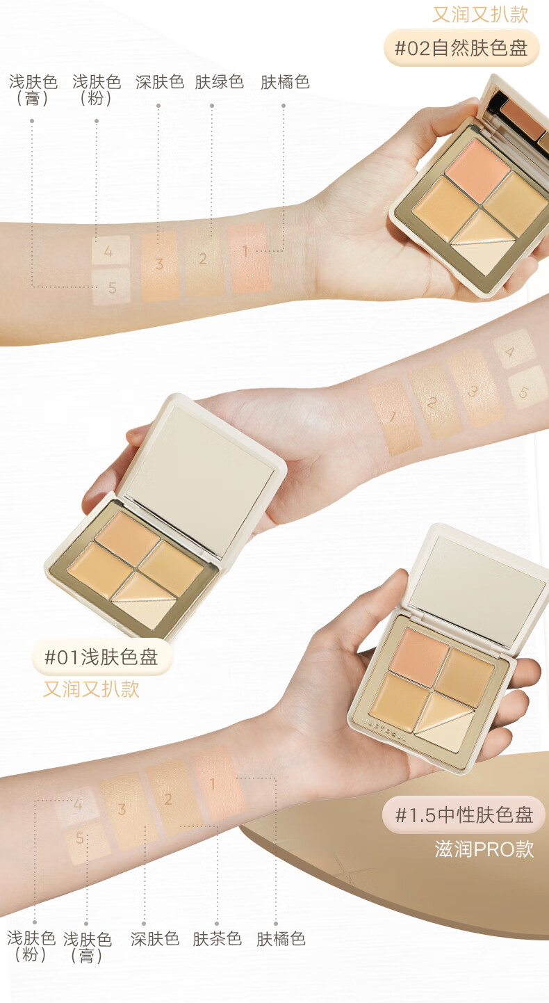 Judydoll Five-Color Concealer Palette Concealer Base Makeup Covers Spots and Dark Circles to Brighten New Year's Gift 01 Light Skin Color