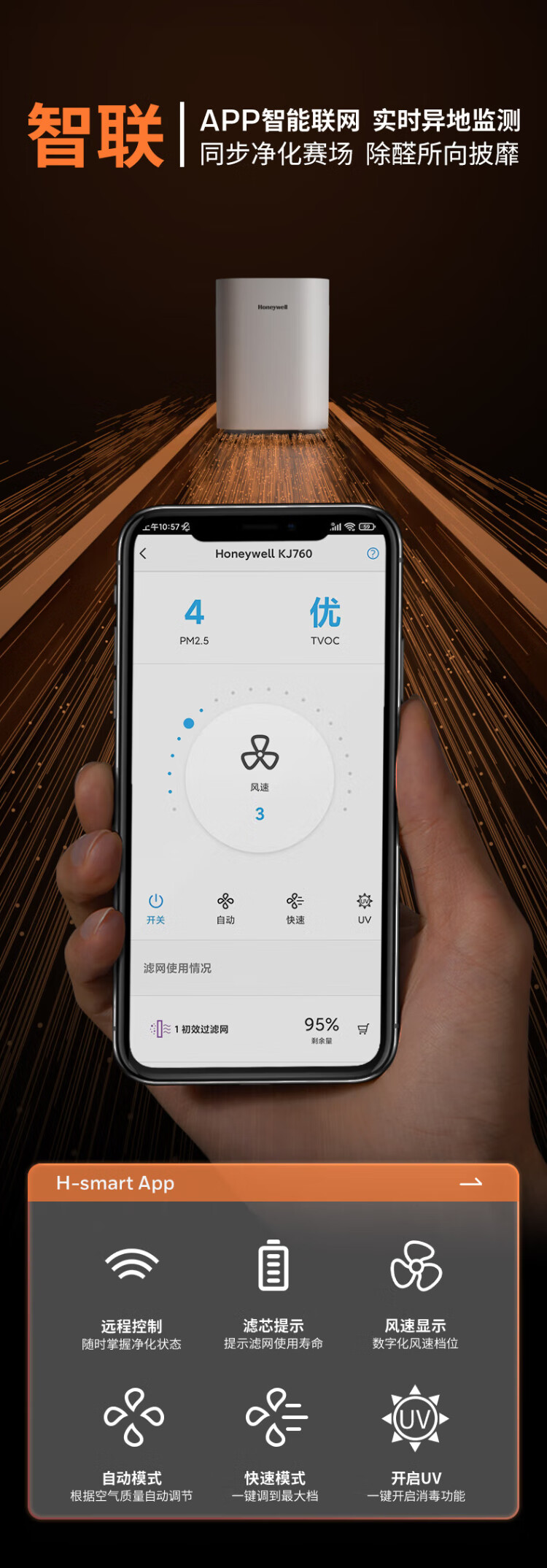 Honeywell air purifier removes formaldehyde, bacteria, pollen allergens, tvoc influenza virus, new house formaldehyde removal, air disinfection machine, national subsidy for home appliances KJ760F-P22W