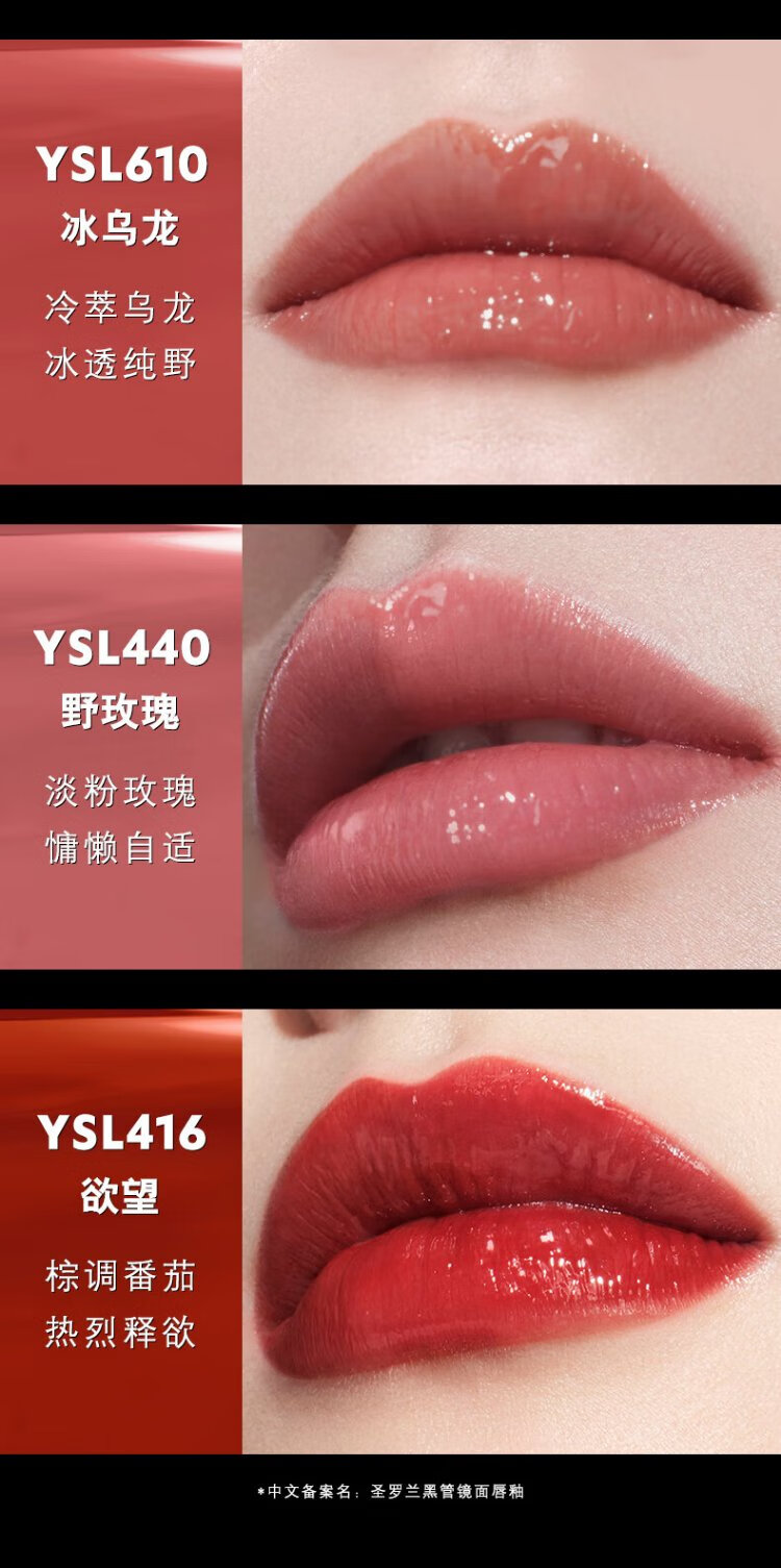 Saint Laurent (YSL) black tube mirror love lip glaze 440 lipstick moisturizing cosmetics birthday gift for girlfriend