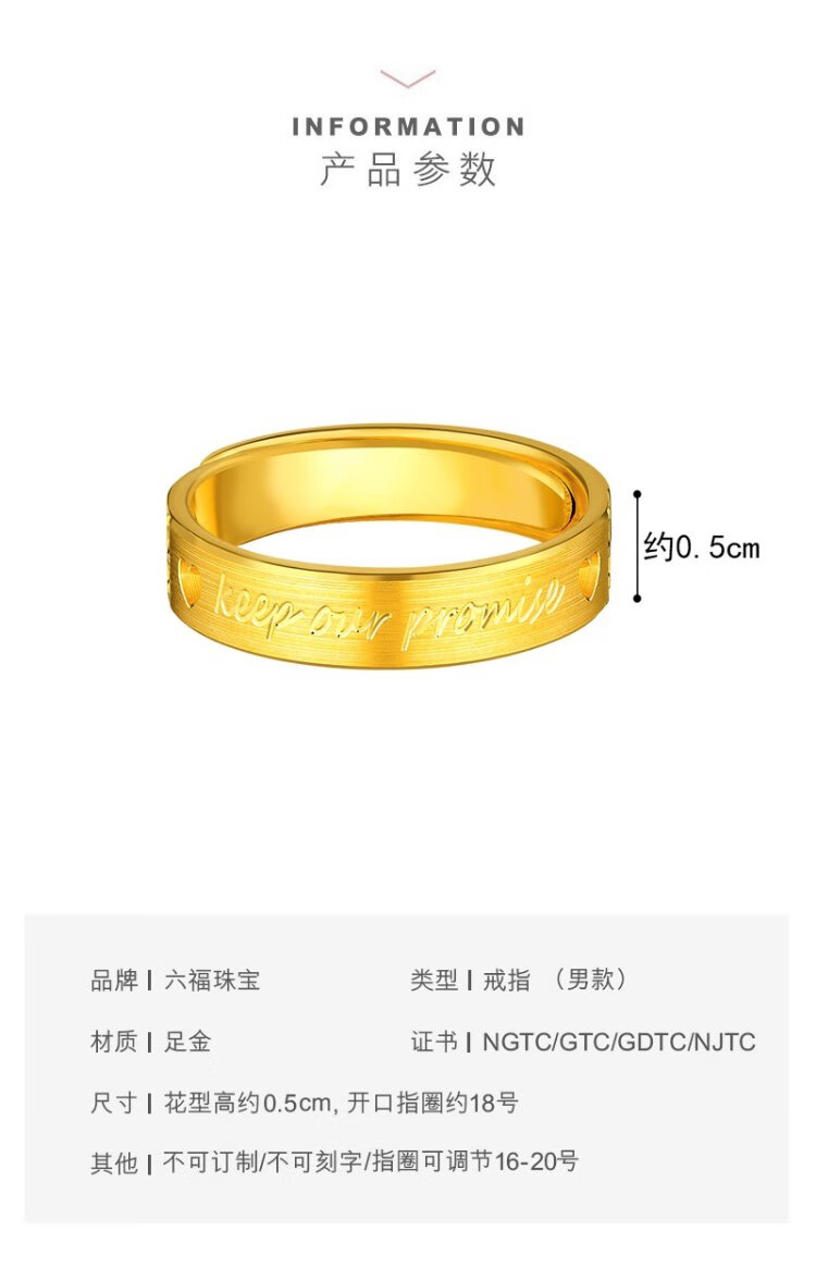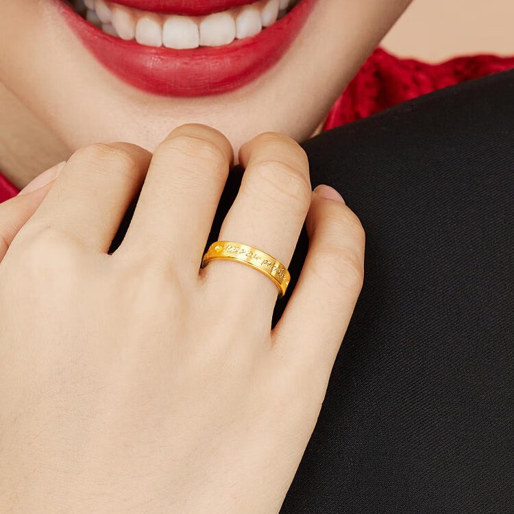 Lukfook Jewelry Wedding Gift Pure Gold Promise Gold Ring Couple Solid Ring Price Approximately 5.10g - Women's Model