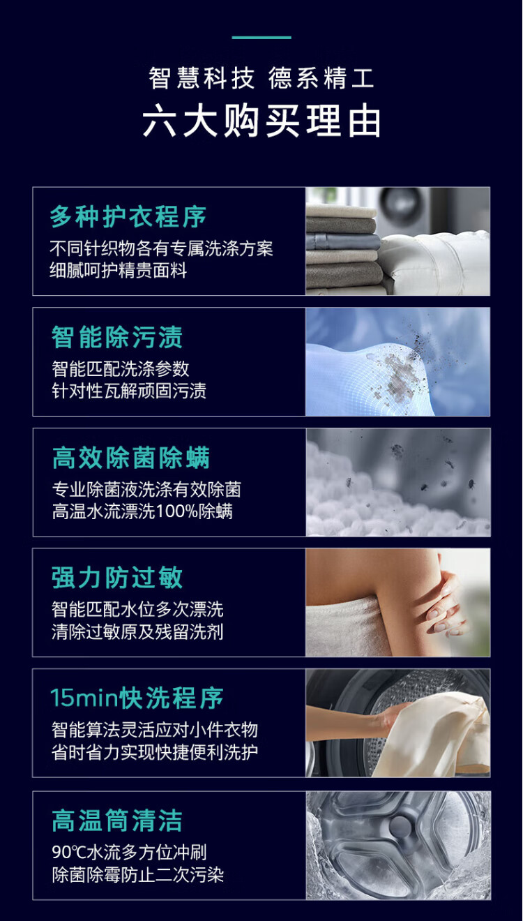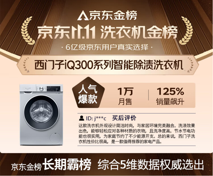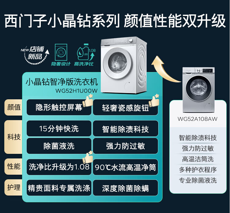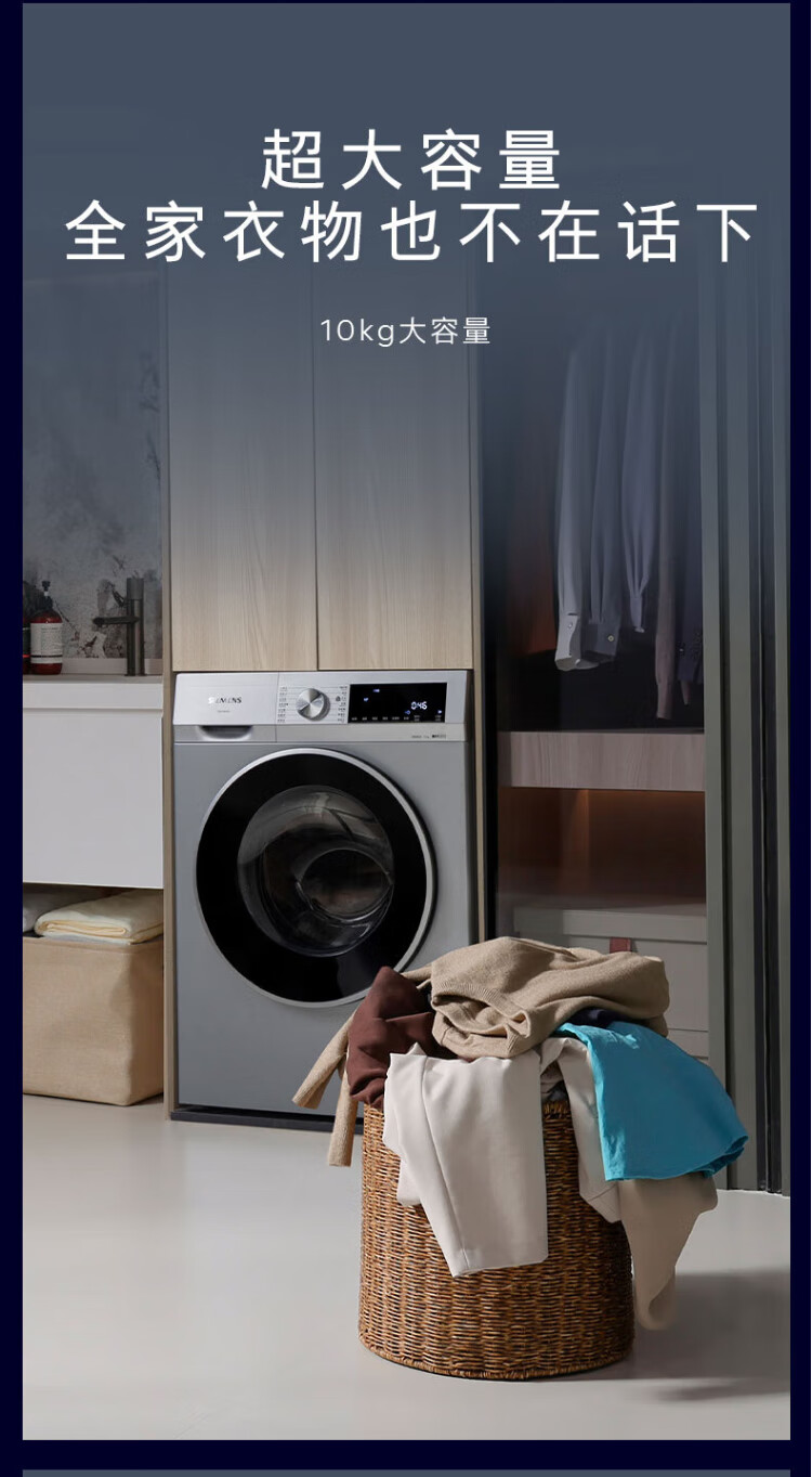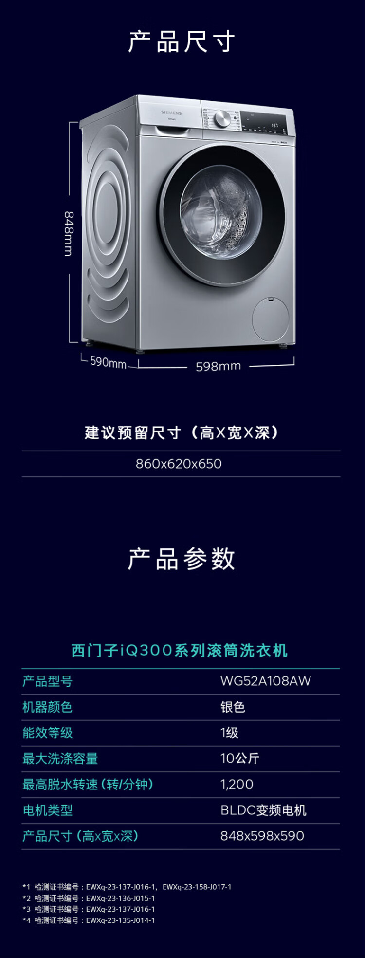 SIEMENS iQ300 10kg drum washing machine, fully automatic, intelligent stain removal, powerful mite removal, wool washing, 15-minute quick wash, 108AW national subsidy for home appliances
