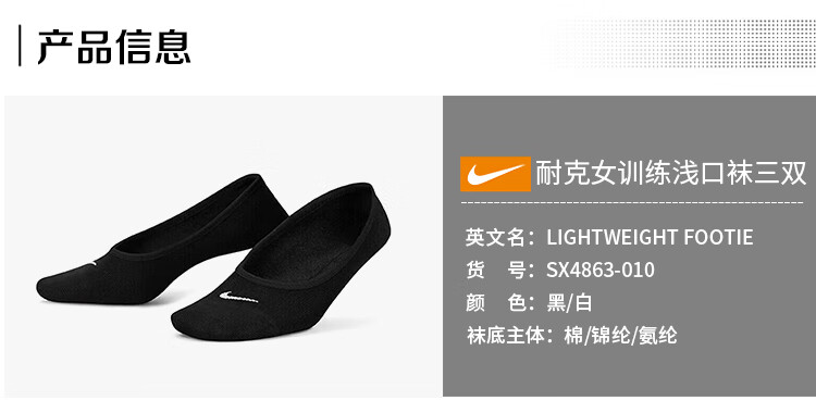 Nike (NIKE) socks for men and women, sweat-absorbent and breathable sports socks, three pairs of boat socks SX4863-010 black S