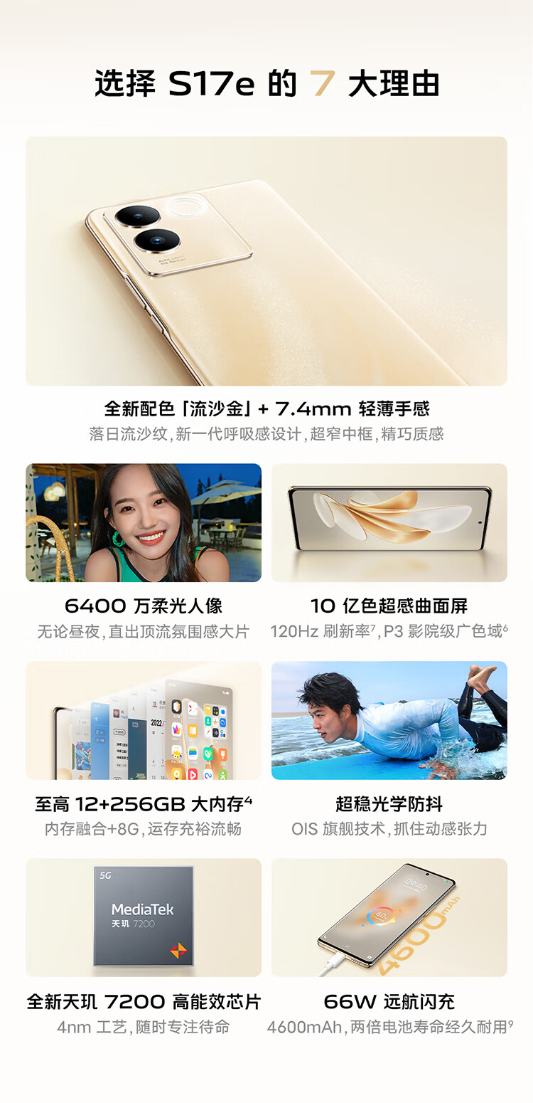 Vivo S17e 8GB+256GB Sunny Blue 4nm Powerful Chip 64MP Soft Light Portrait Optical Image Stabilization 5G Camera Phone Vivo Contract Phone Exclusively for Mobile Users