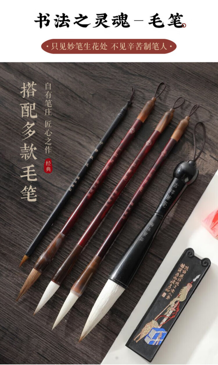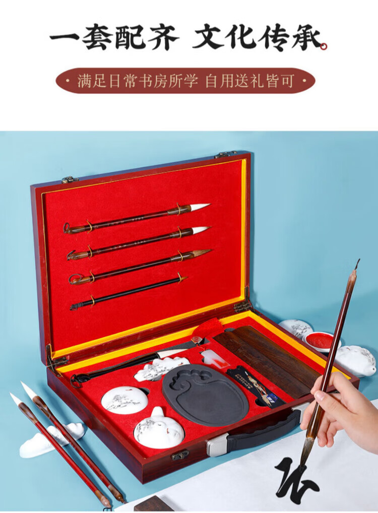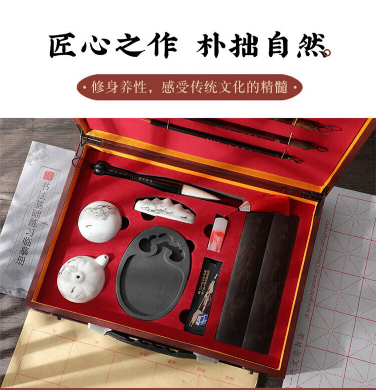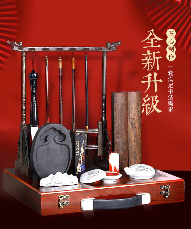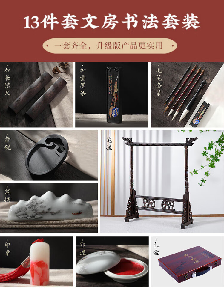 梅林笔庄文房四宝精品套装高档礼盒兼毫毛笔印章笔挂初学者国画书法入门学生全套笔墨纸砚文房升级礼盒套装