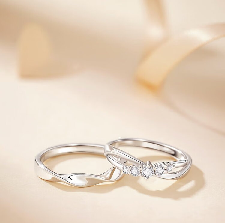 Central Chuang Fashion Chinese Gold Couple Ring Proposal Ring Silver 925 Ring Pair Birthday Gift for Girlfriend