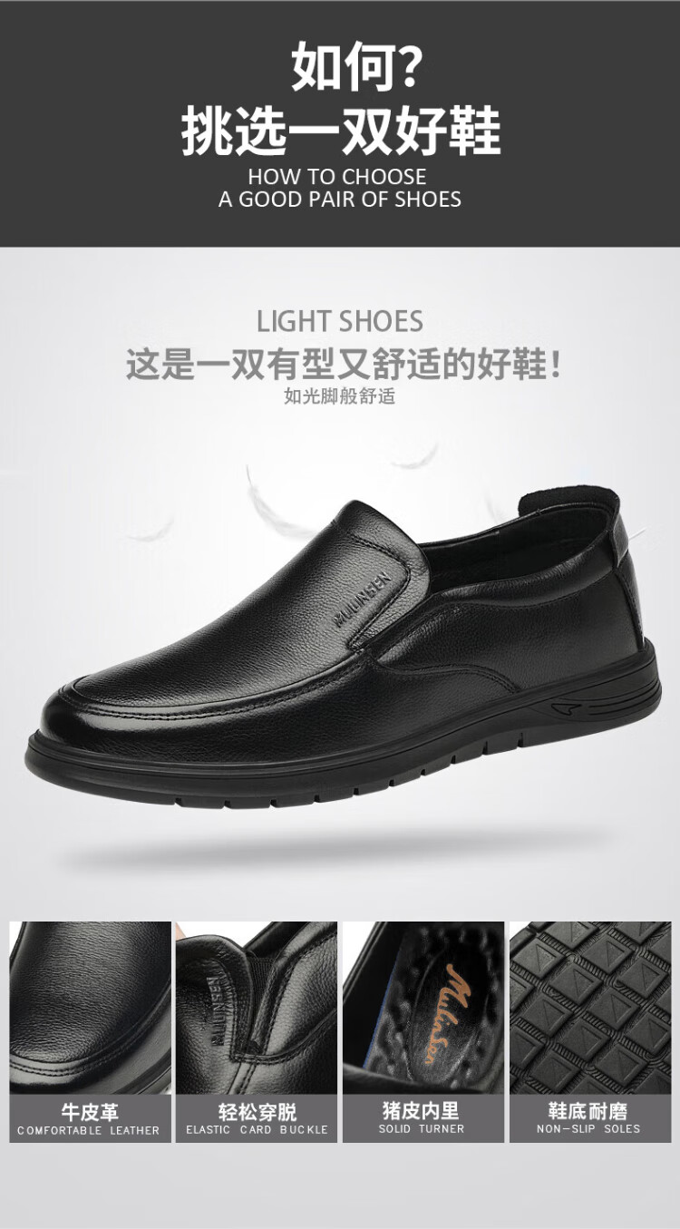 MULINSEN men's shoes business formal casual leather shoes soft sole breathable over-the-foot driving leather shoes L223233
