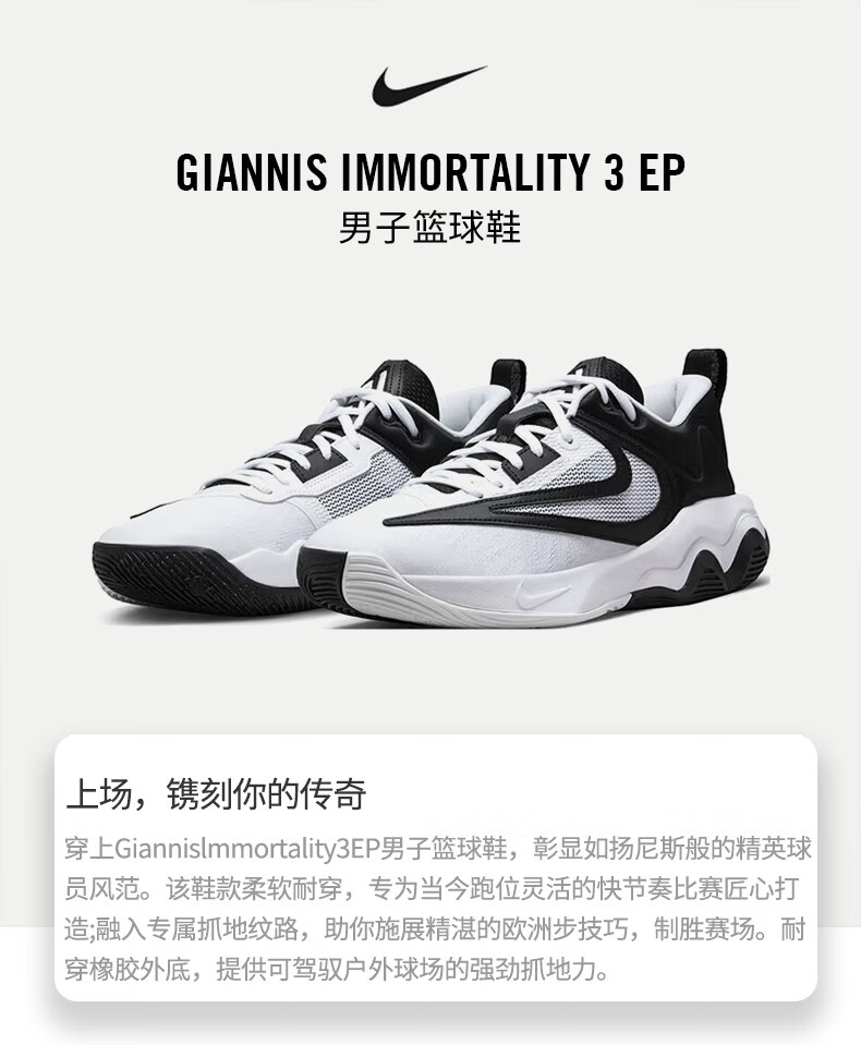 Nike (NIKE) men's basketball shoes GIANNIS IMMORTALITY low-top sneakers DZ7534-100 white and black 43